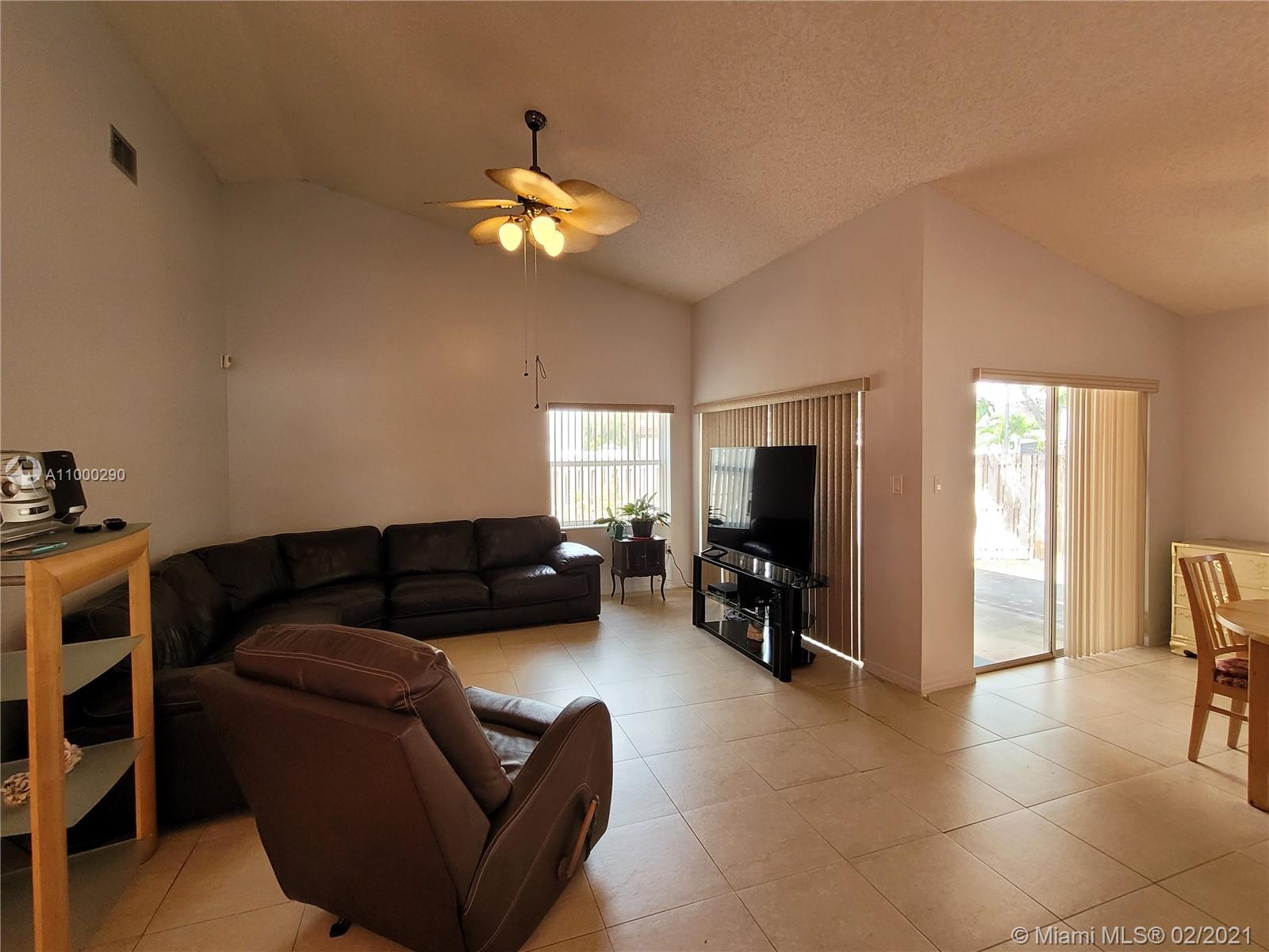 Excellent opportunity awaits, with this lovely home in The Lakes on The Green Community. It is a 3 bedroom, 2 bath house, 2 family rooms, formal living & dining areas, screened porch and 2 car garage. Tile throughout the entire house. The Master Suite, has a walk in closet. Master bathroom has a large shower with sliding glass doors, his & hers sink areas. The Kitchen is equipped with stainless steel appliances . This property is located in a gated & security manned community.