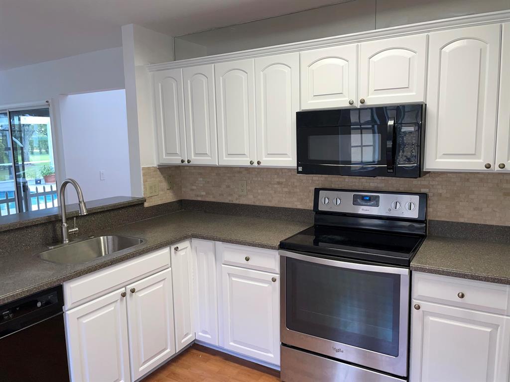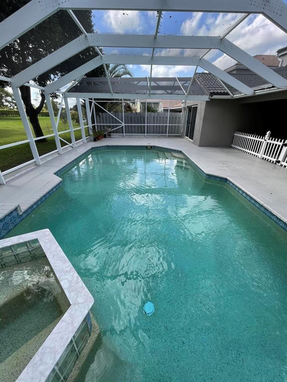 Beautiful 4 bedrrom, 2.5 bath pool home in Lakes of Boca Raton. This home boasts cathedral ceilings in living room with lots of natural light, wood floors in all living areas. First floor master bedroom with beautifuly remodeled master bath. Split floor plan upstairs with remodeled bathroom. Formal living room and dining room. Kitchen has updated cabinets, corian countertops with stone backsplash. Large eat-in kitchen and bartop seating. Great covered patio area opens to screened pool & spa. Two car garage, alarm system, spacious laundry room & ceiling fans in all bedrooms. Community amenities include huge pool, play ground, exercise room, basketball court & tennis courts.