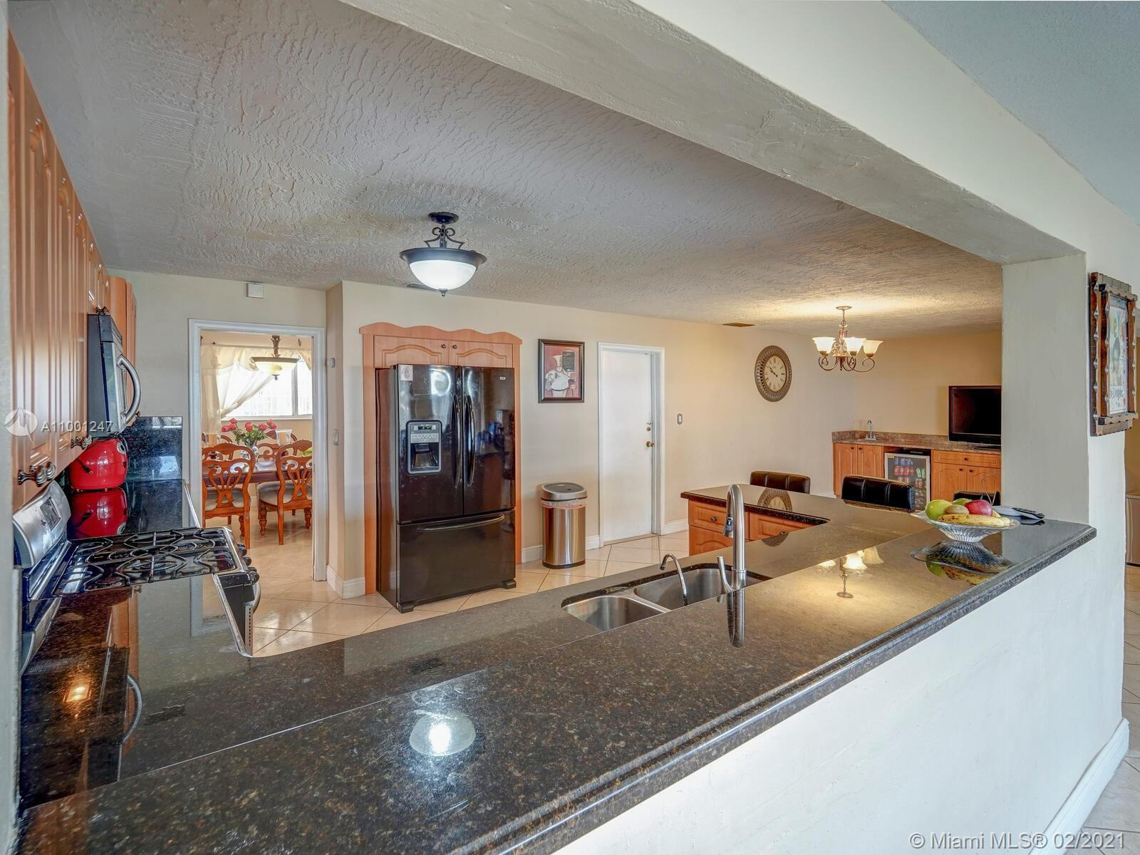 Pride of Ownership exudes from this large 3 bedroom, 2 bath home in desirable Sunrise Golf Village with NO HOA. The enclosed Family Room gives opportunity for extra living space and a possible 4th bedroom. There is a 2 car garage, a circular driveway, front and back patios and plenty of room for a pool in the fenced in yard with fruit trees. Large, Updated kitchen with a built in beverage bar. Updated bathrooms. All tile throughout, ceiling fans in every room, New electric panel in 2016, A/C approximately 5 years new, tankless water heater, hurricane shutters, Extra storage room outside and in garage, Laundry sink with washer and gas dryer in garage and extra refrigerator stays. Must see to appreciate.