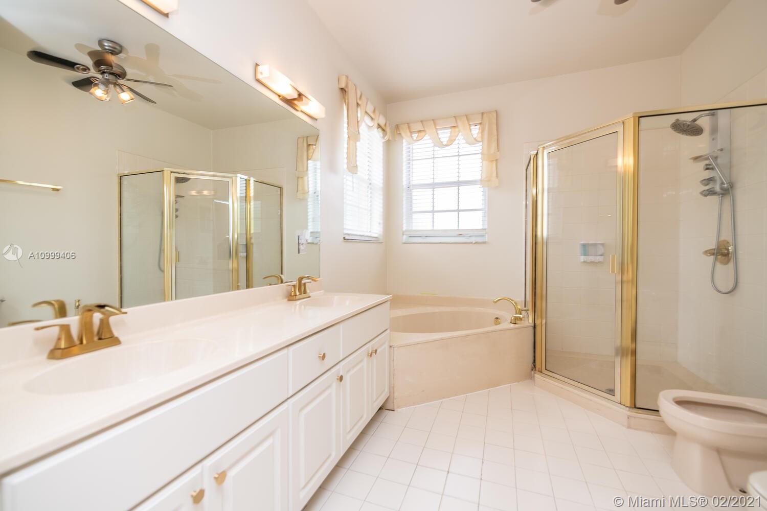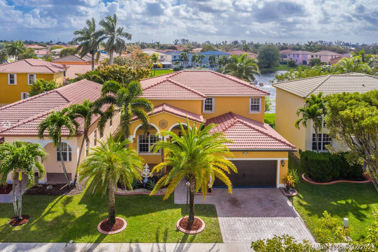Multiple Offers - Highest and Best Please **This beautiful Mediterranean 2 story home features 4 bedrooms with 3 1/2 bathrooms. There are 2 master suites with one located on the 1st floor. Master bathrooms both include a roman tub with a separate shower plus a bidet. Enjoy family dinners in this formal dining room and an oversized eat in kitchen. Volume ceilings throughout. Loft located on 2nd level. Other features - wrought iron railing with wood stairs*pantry*french doors*accordion shutters*extended covered patio with travertine tile overlooking the lake*sprinkler system drawn from lake*walk in closets with built in cabinetry*remodeled*oversized 30x30" porcelain white tile on main level*lush landscaping with fountain*this home along with neighboring homes show pride of ownership.