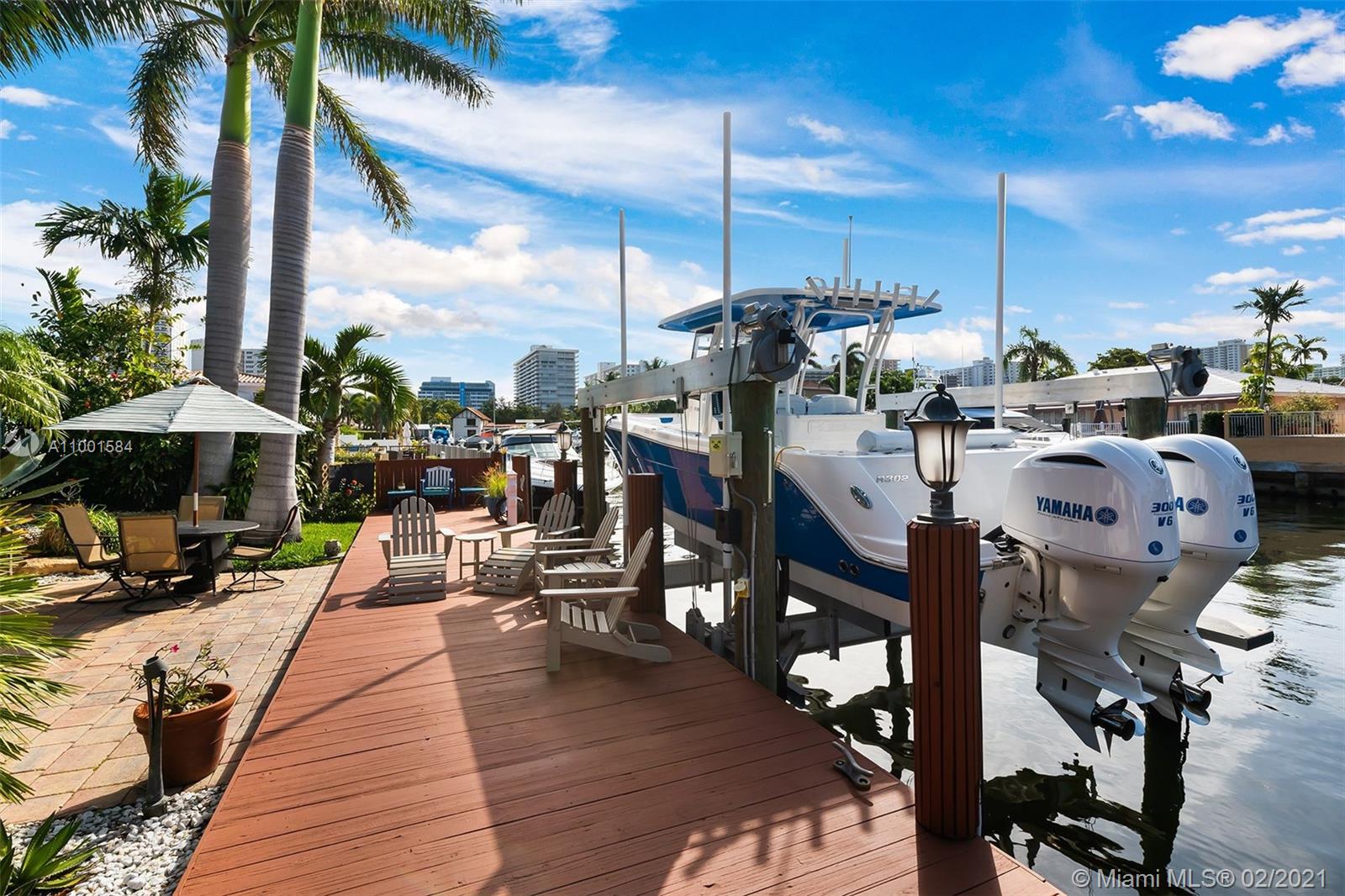 Gorgeous and remodeled waterfront home in Gated, upscale, Bermuda Riviera. 80 Feet of waterfront on a wide navigable canal with a new 20,000 lb boat lift and deep dock. Only 4 homes to the Intracoastal. 3 Bedrooms and 2 baths plus Office/Den. Spacious open floor plan with entertainers kitchen and Indoor/outdoor space. Granite countertops, custom cabinetry, and oversized cooking island. Light and bright with Impact windows and doors. New roof 2015. New A/C. New Impact Garage door. Beautiful screened in pool. Walking distance to shopping, restaurants, and Fort Lauderdale Beach. This home can be sold turnkey/furnished and won't last long!