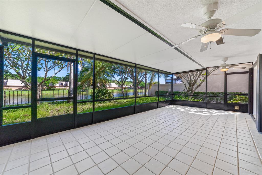 Prime location for this bright and luminous 3/2 gem. Near everything you need and want, Whole Foods, PBG Outlets, City Place, restaurants, beach, fishing, golfing and much more! HOA includes CABLE, WATER, FRONT LAWN SERVICE, PRESSURE CLEANING, SECURITY SYSTEM, RUBBISH REMOVAL, 24-7 MANNED GATE. ROOF is less than 2 years old. Accordion shutters throughout. Plus a serene water view.