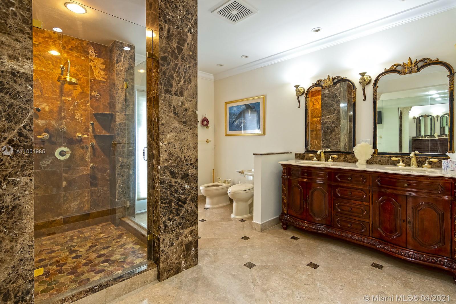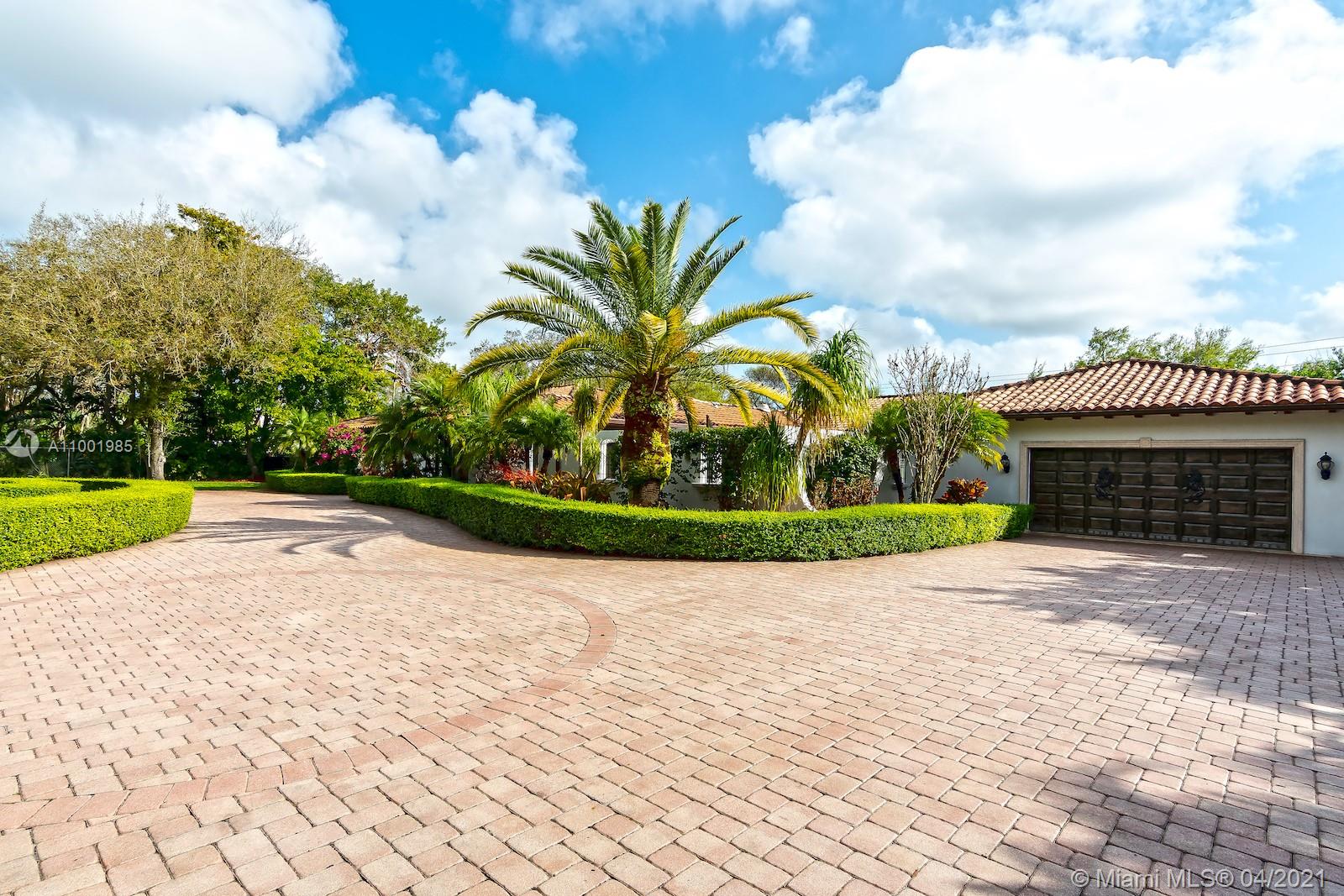 This amazing and secluded one story home located in the sought after N. Pinecrest area, 7,162 SqFt with a total of 6 bedrooms and 6 baths. A perfect venue for gatherings and celebrations, this gated gem is one of a kind. House can be use as two separate wings each with a master bedroom around a large saltwater pool. Large gourmet kitchen with subzero and Viking appliances. Handcrafted moldings, French doors, impact windows, room for a tennis court and space for a large boat. Enjoy a beautiful sunset and tropical breeze