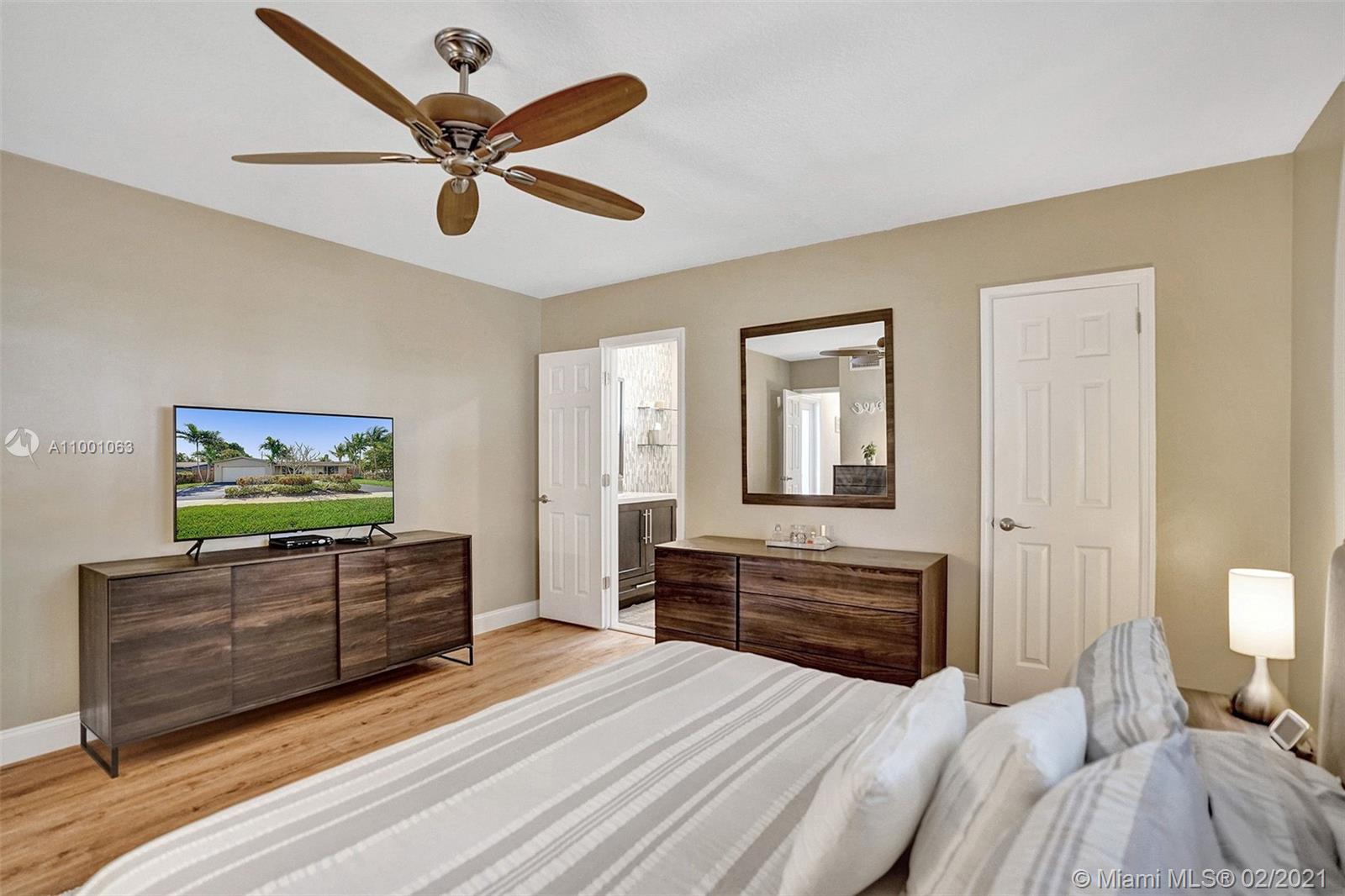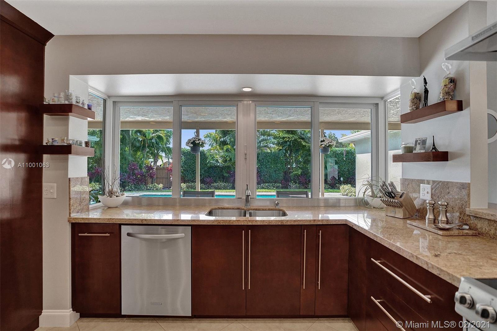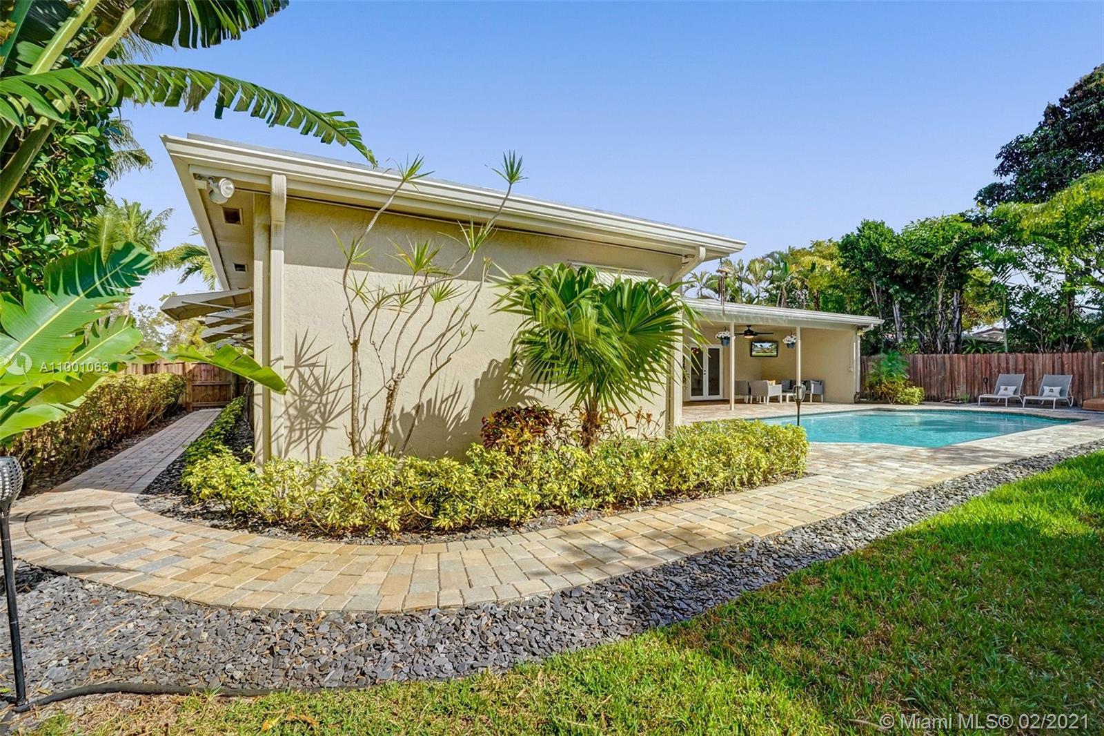 Move Right In! This fully renovated 3 bed, 2 bath home, sits on a large corner lot, that is beautifully landscaped. All windows and doors are impact. Spacious kitchen with real wood cabinetry, granite countertops and SS appliances. Kitchen features a large pass-through window, perfect for entertaining on the expansive, paver lanai. Enjoy the recently resurfaced, temperature-controlled pool all year around as you are surrounded by lush tropical foliage. All bedrooms feature newly installed floors, bathrooms are completely remodeled and closets in all bedrooms have custom shelving and ample storage, with the primary having a walk-in closet. The 2 car garage has Flow Wall storage system with additional roof racks, and a new HE washer and dryer. Live in Hollywood Hills! Wont last!