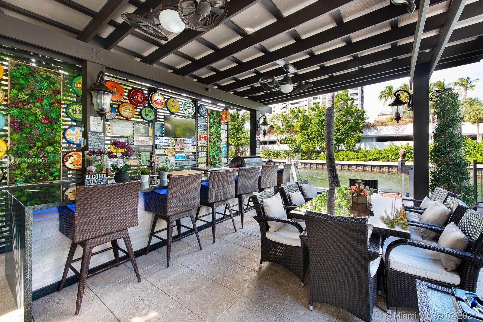 Florida lifestyle at its finest. Indoor-outdoor living like a private resort with a heated pool, boat dock, full out door kitchen, bar and living room, together with a private gym, sauna, service quarter, new Italian cabinetry and high end appliances throughout. No expense spared in this dream home. For the most discerning buyer. Great for entertaining or as your own private oasis. Short trip to the open ocean thru the Bal Harbour/Haulover Inlet.