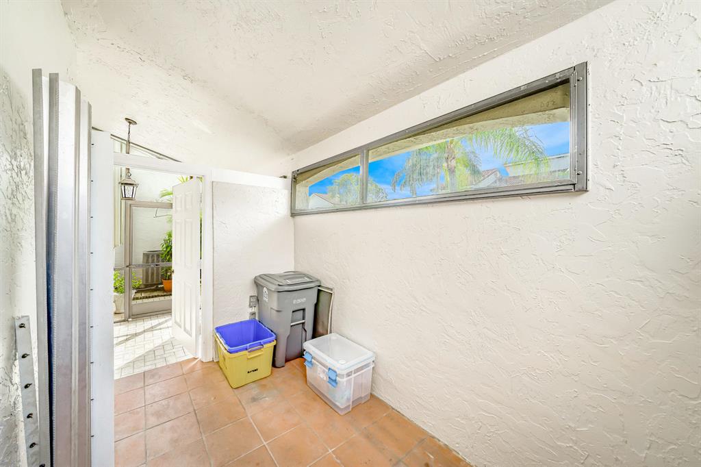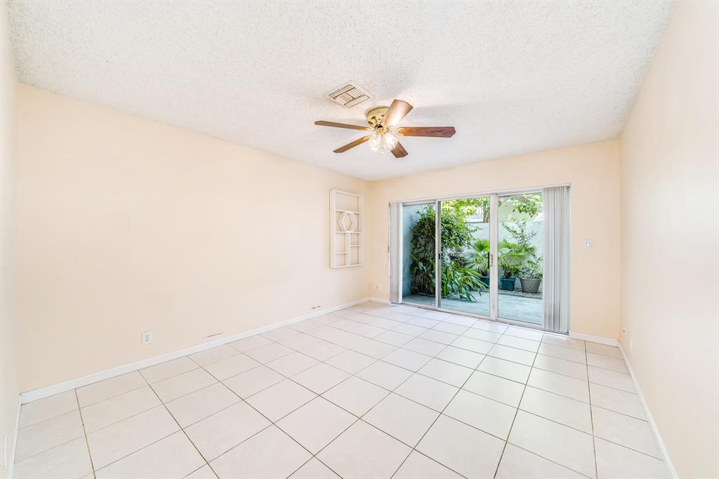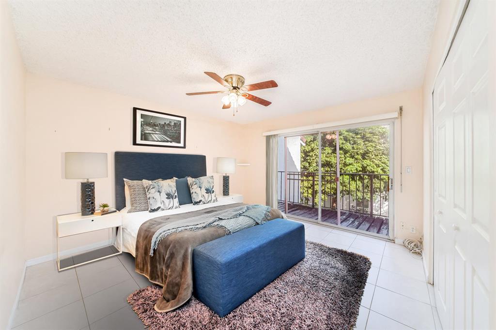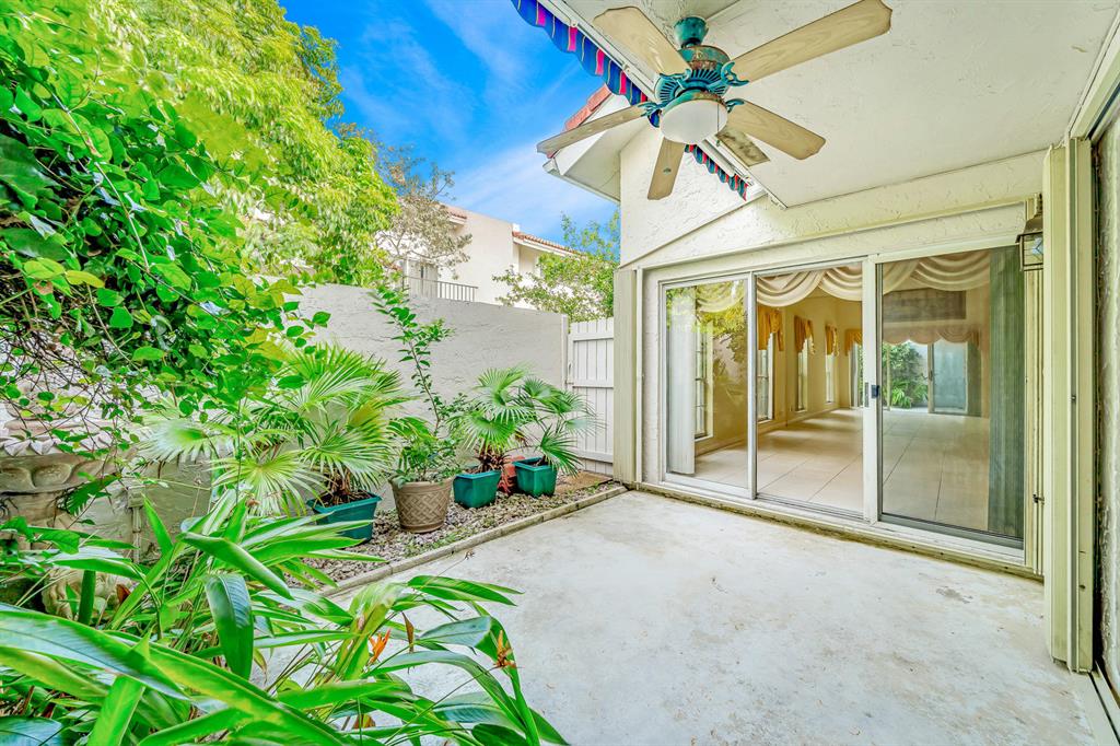 Clean & neutral townhome within walking distance to shopping, schools, parks, & houses of worship. Two Master Suites! One up/One down plus large loft for office/den w/huge closet that could easily be converted into 3rd bedroom. Open kitchen w/snack bar to eat in area and living room. Spacious with 2-story high ceiling living area...Private w/nice landscaping is the back courtyard with retractable Sunbrella awning. Balcony off master suite upstairs. Covered screened in porch/Entryway/large separate storage space plus big storage area under stairs. Inside laundry. Accordion and panel hurricane shutters. TWO parking spots + guest parking. Community Pool. LOW HOA fee. All ages welcome. Pet friendly. Walking distance to Del Prado A+ school and houses of Worship.