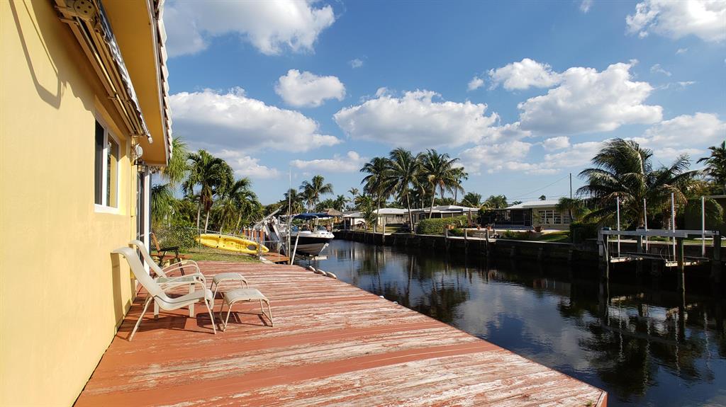This beautiful 3 bedroom 2 bathroom water front home is located on a quiet block in the neighborhood of Pompano Beach. The house is very meticulously maintained and has been updated with hurricanic impact windows, electric panel and nice LED lighting. Palm trees are planted both sides of the house to give it a tropical feel as well as privacy. The city has approved the fixed bridge to now be a raised bridge.