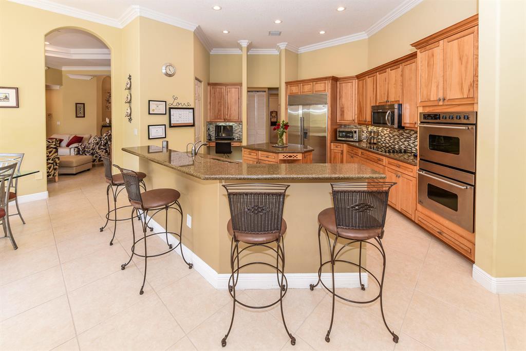 MUST SEE BEAUTIFULLY MAINTAINED MEDITERRANEAN STYLE 5 BEDROOM HOME ON PRIVATE CORNER LOT. STUNNING CUSTOM RESORT POOL WITH DECK JETS, HEATED SPA/POOL, SOLAR HEATER EXTENDING POOL SEASON + SCREEN ENCLOSURE ADDING OVER 1,600 SQ FT FOR OUTDOOR ENTERTAINING. POOL AREA INCLUDES BUILT IN BBQ/MINI FRIDGE & GORGEOUS TRAVERTINE DECKING. CUL DE SAC STREET WITH NO THROUGH TRAFFIC GREAT FOR KIDS TO PLAY & WALK OR BIKE TO SCHOOL (K THRU 8TH GRADE) ACROSS COMMUNITY ENTRANCE. GOURMET CHEF'S KITCHEN W/ GRANITE & STAINLESS STEEL APPLIANCES (BUILT-IN SUB ZERO FRIG). 42'' SOLID WOOD CABINETS & CENTER ISLAND OVERLOOKING FAMILY ROOM AND POOL. OPEN ROOM CONCEPT. CROWN MOULDINGS AND COFFERED CEILINGS IN FORMAL LIVING ROOM AND MASTER BEDROOM. NATURAL BAMBOO WOOD FLOORS IN ALL BEDROOMS. SEE MORE.....