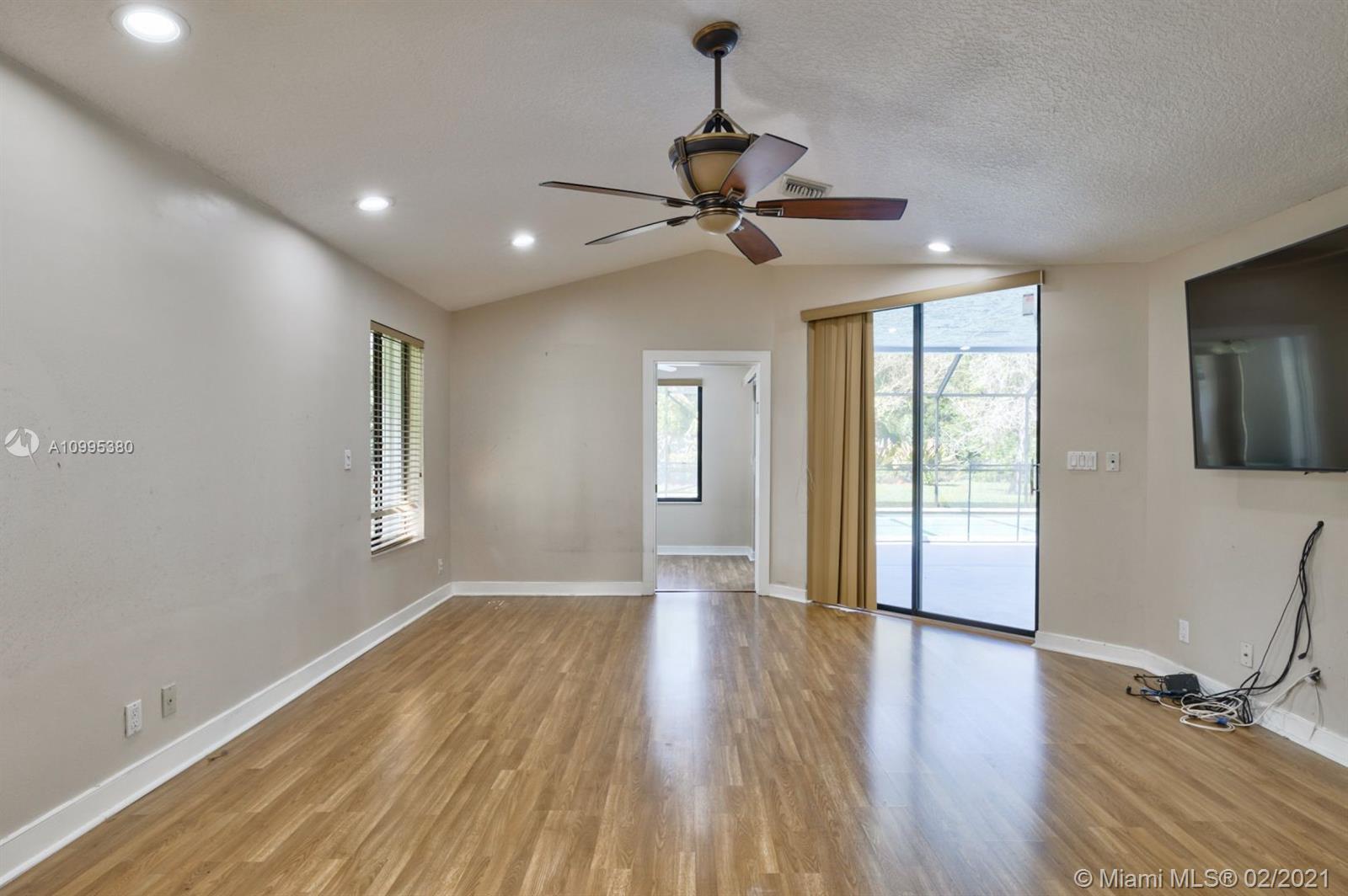 Bright open pool home (ACRE+) in the quiet & highly sought-after guard gated community of Whispering Woods. The lushly landscaped paradise backyard backs up to a beautiful nature preserve w/ walking path & gazebo. Plank tile flooring, volume ceilings, updated kitchen w/ solid wood cabinets, granite counters & SS appliances. Great family layout, split bedrooms & an oversized family room, w/ wet bar & fireplace overlooking tropically landscaped yard. Master bedroom w/ extra sitting room overlooks backyard. Great for office or nursery. 2015 ROOF! Large Circular Driveway. Screened-In Pool & Spa w/ Baby Guard Fencing & Whole Home Hurricane Shutters. A Rated Coral Park Elementary! Property abuts Parkland, w/ Sawgrass Expwy. Access, just minutes to Boca.