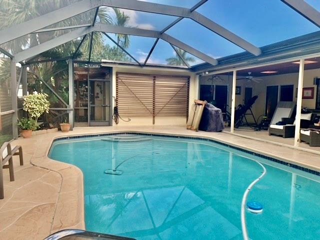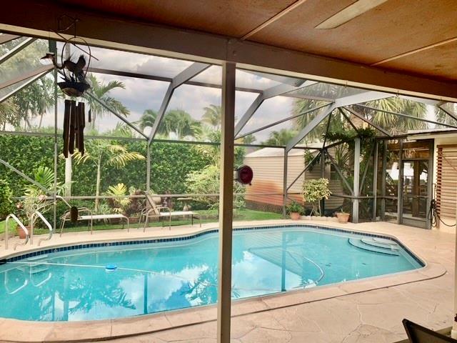 Lovely Hollywood Hills home with over 2,100 sq. ft. of living space. Close to world class shopping, restaurants and beaches. The interior boast soft close wood cabinetry, granite counter tops, stainless steel appliances, kitchen pass through window to a 600 sq. ft. lanai over looking pool, eat in kitchen, tile and engineered wood floors, lots of built ins for storage, newer ac and electrical box. Pool decking has been newly redone with stamped concrete and domed screening over pool and lanai for bug free outdoor entertaining. Enjoy the backstreet entrance with a newly installed sliding gate where you can park an extra vehicle on a concrete slab under a gazebo. You will also find a large air conditioned storage shed with cabinets and a custom build Aviary bird cage under a oak pergola.