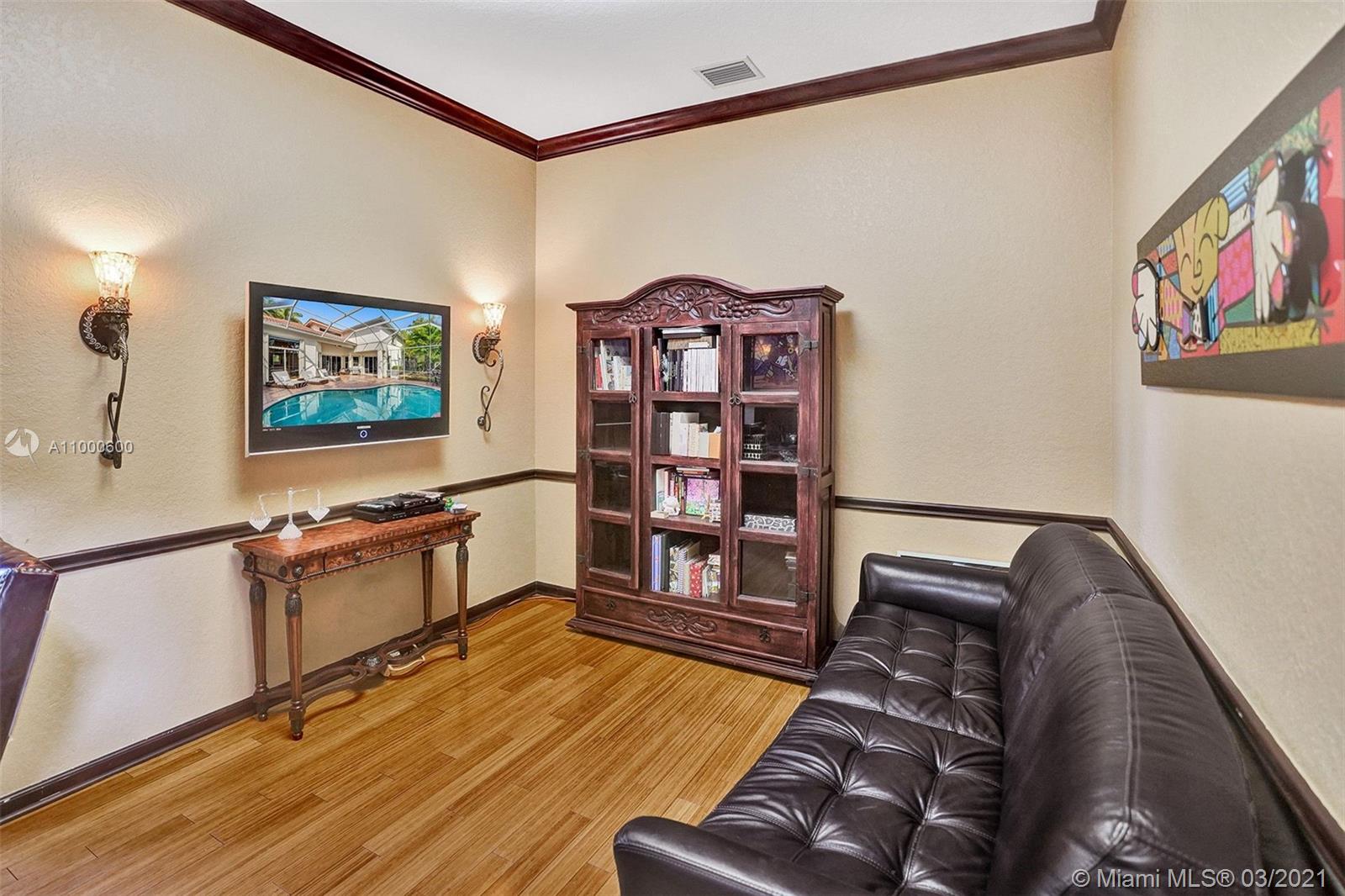 The seller just reduced price as an allowance for wall decor or paint! Tucked in the gated community of Victoria Pointe at Weston Hills Country Club.Spacious Denton model with the finest of upgrades.Enter this grand home with gleaming marble flooring with a 2 story living room, private office with windows on the pool and patio. Master bedroom suite on the first floor with soaring ceilings, custom draperies, bamboo wood flooring, and new black-out electric shades.A luxurious bath, oversized dual shower&sinks.State of the art Wolf in the woods kitchen(2011)fit for a chef with oversized island,double granite countertops, two pantries in kitchen, one walk-in, and top-of-the-line Bosch appliances. Enjoy a dual staircase to the second level with gorgeous wrought iron railings with wood stairs.