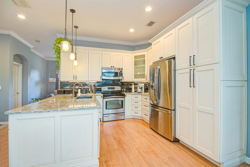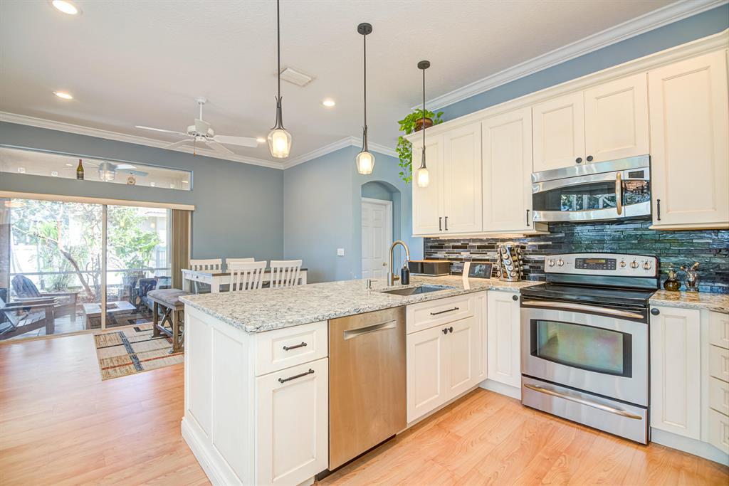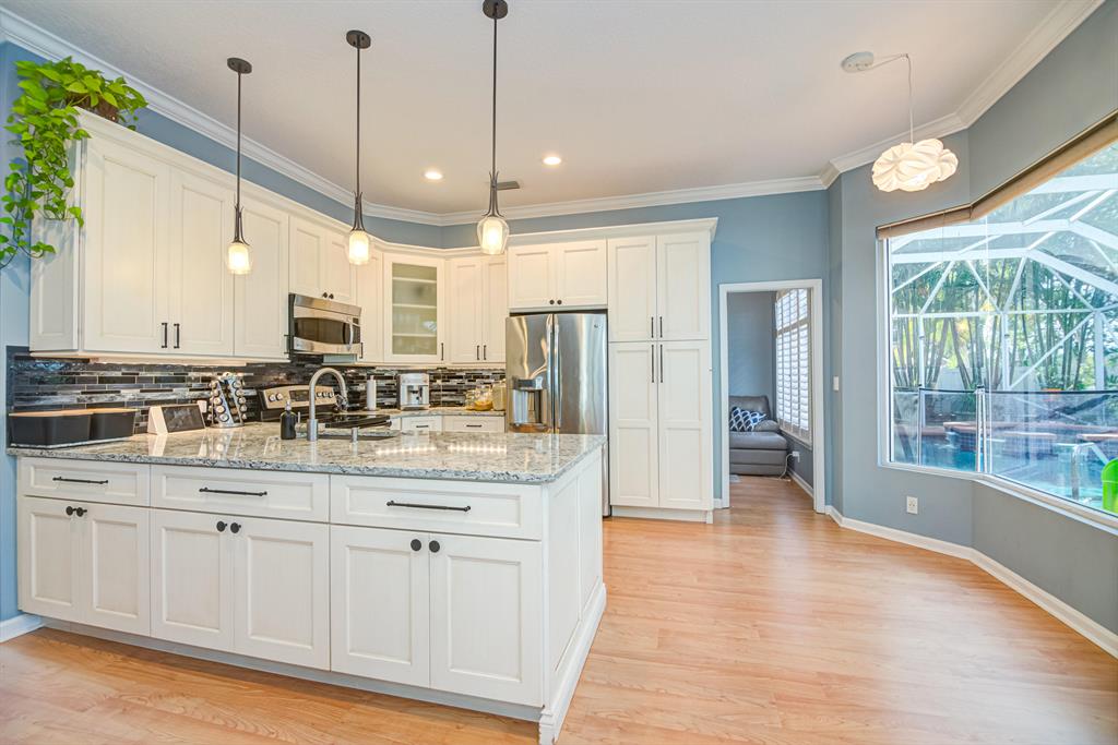 POOL HOME ON THE PRESERVE IN THE CONVENIENTLY LOCATED ANDROS ISLE COMMUNITY. 4/2/2 pool home with split bedroom floor plan. Master bedroom suite includes walk in closet with organizer. Must see Spa like master bath. Updated eat-in kitchen with Cambria Quartz countertop, SS appliances, and soft close cabinets & drawers is open to the adjacent dining area. 2nd & 3rd bedrooms are located on the opposite side of the home. BD 4 does not have a closet and can be used as bedroom/den/office. Other features include plantation shutters, motorized room darkening blinds in the living room, updated lighting, smart home management, new AC, awning, salt water pool and spa with heater, and more. Crystal chandeliers in LR and FR and speakers in each room do not convey. Close to beach, shopping & dining.