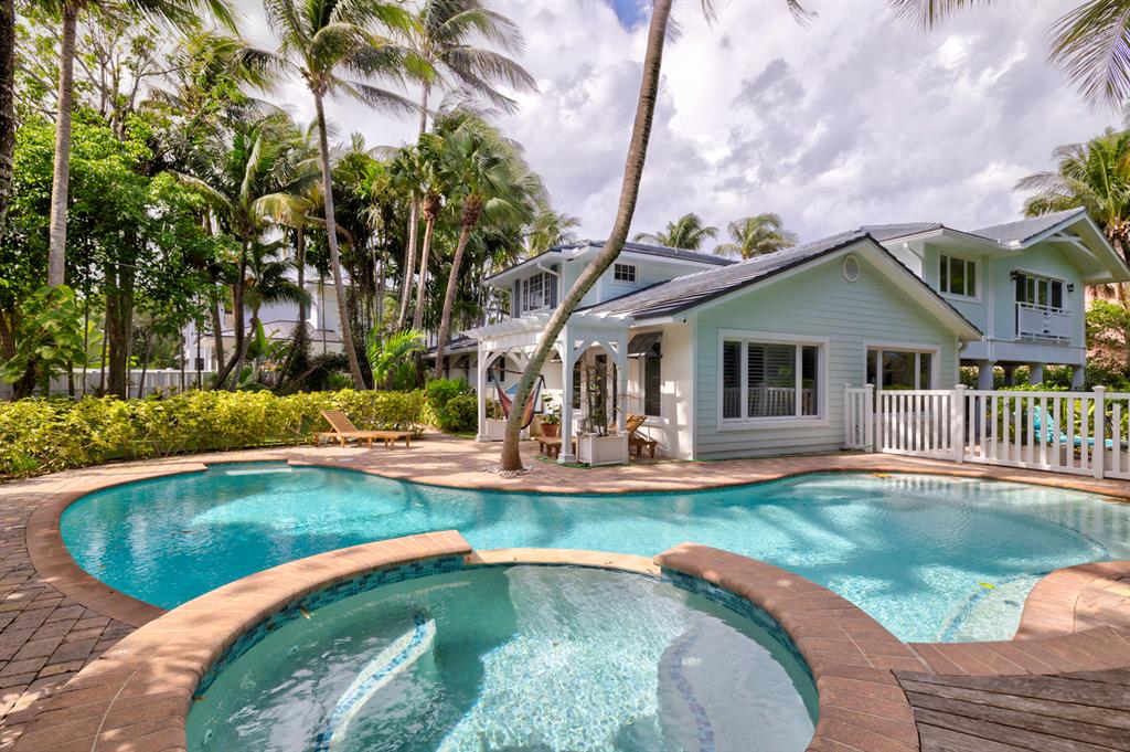 Absolutely beautiful furnished beach house located in the prestigious Sun and Surf neighborhood of East Boca. This home sits on an oversized lot on a quiet cul-de-sac and backs to Red Reef Executive Golf Course on A1A. Remodeled in 2017, features include Impact Glass windows and doors, gorgeous hardwood floors, vaulted wood ceilings, custom eat-in kitchen with Calacatta marble countertops and wolf and subzero appliances opening to a family room w/ fireplace. There are 2 bedrooms downstairs and Master and 2 additional upstairs. The Master has a morning bar, super large closets and a fabulous master bath. The Outdoor area is an entertainer's dream with tropical lush gardens, patios and terraces, Summer kitchen and a heated pool and spa.