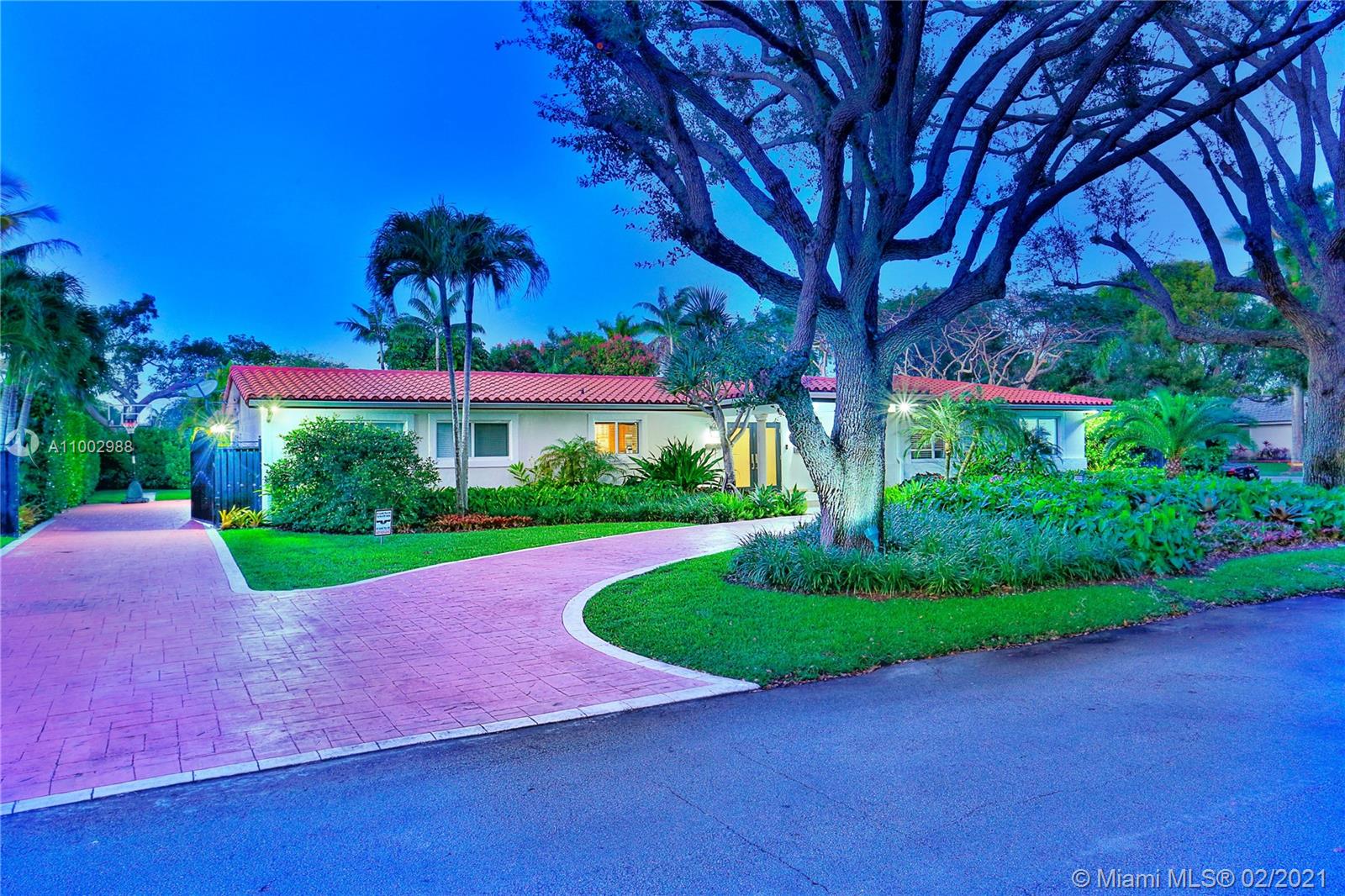 Chic, modern and spacious ranch style house ready to move-in on a stunning lush 16,988 sq ft corner lot in splendid Pinecrest. An oversized driveway with oak trees welcomes you to an updated 5 bedroom/4 full bath + den in a flowy split floorplan. Attractive features: great energy and natural light flows throughout the house with warm hardwood floors, impact windows and doors, a gourmet kitchen with s/s appliances incl double oven, separate laundry room and two-car port. The Master suite and bath designed with privacy in mind. The bedroom and full bath quarters all great sizes. Den opens to living room and connects to a bathroom. The family room feels it's part of the gorgeous patio overlooking the pool thanks to its wall-to-wall sliding glass doors perfect for relaxing and entertaining.