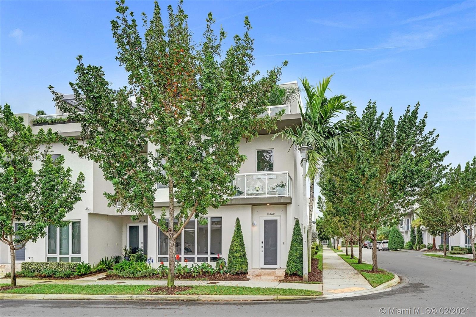 Luxuriously modern 3 story corner townhome w/ 4 bedrooms & 3.5 baths in main building + NEXTGEN unit w/ private suite, kitchenette, bath, laundry & A/C. Open design w/ impact windows/doors. Porcelain & laminate flooring. SS banister. European-style kitchen w/ quartz top, ss built-in oven & microwave, wine cooler, new Samsung dishwasher, frosted glass cabinetry/pantry & Sweep Vac. 4 terraces + private balcony off master. Ground floor bedroom. Container Store closets. Skyview Terrace w/ Summer Kitchen- SS BBQ grill, range, refrigerator, & granite countertop. Separate rooftop terrace w/ jacuzzi. Landmark at Doral is a Resort style community w/ a top-of-the-line fitness center, pool, tennis courts, playground, open air amphitheater & more. Close to Downtown Doral, City Place, & expressways.