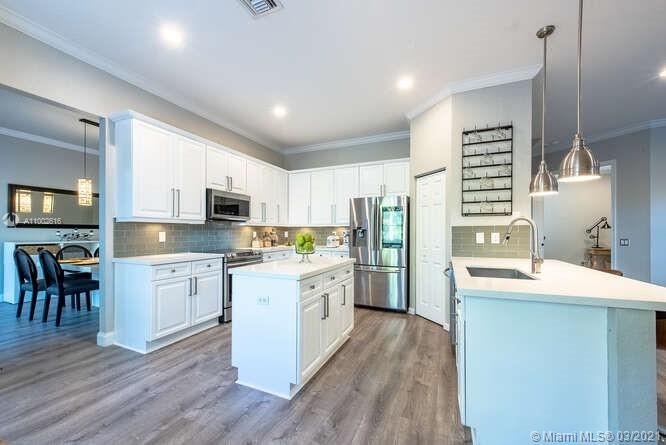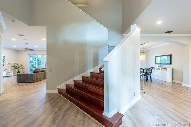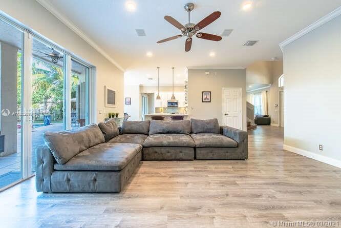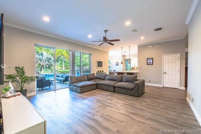 Outstanding Weston Pool Home! Move-in ready with new wood floors throughout. Open floor plan features formal living, dining, and family room. The kitchen is a chef's delight with an island and eat-in area. Super light and bright. The backyard is a tropical paradise with a spa pool and fountains flowing giving a Zen experience in your own home. Upstairs landing has an open area for work or play space. The expansive master bedroom has a separate room to create a yoga room, office or nursery. Double walk-in closets with custom built-in storage. This home is perfect for a work at home environment or a growing family. Great Savanna Community with two gated entries. Resort-style community pool and club house. Enjoy the Florida lifestyle!