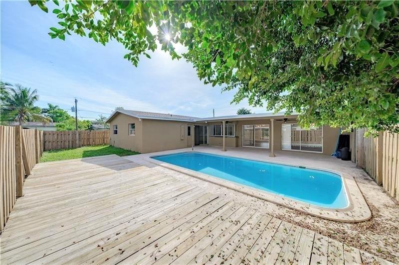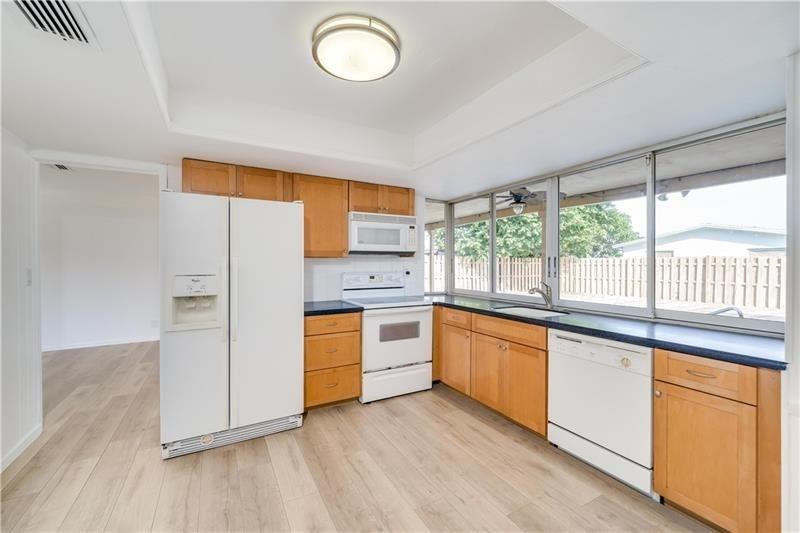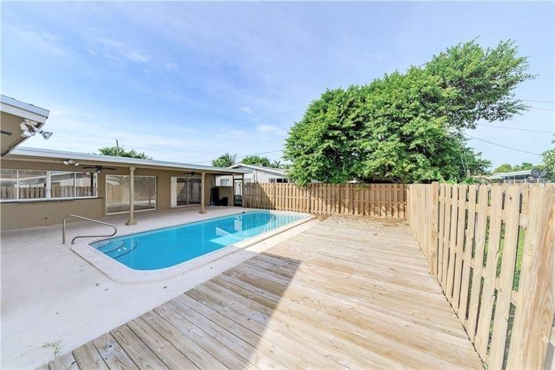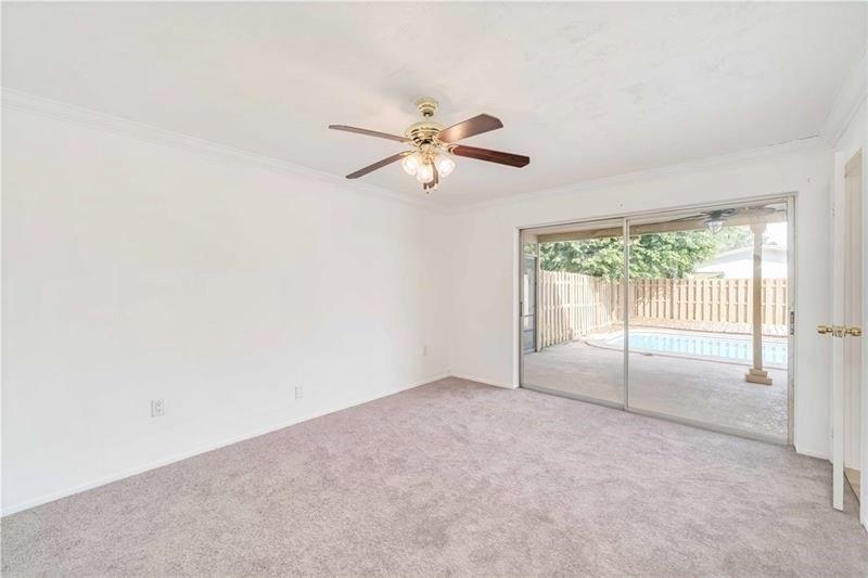 Come see this 4 bedroom , two bathroom split floor plan spacious home! No homeowners association in this Sunrise Golf village subdivision. The home features a pool view from your kitchen and family room, carpeted bedrooms with aquaguard wood flooring throughout the main house, two car garage, covered exterior area, and deck! Roof is only two years old.