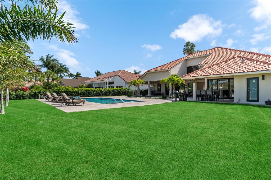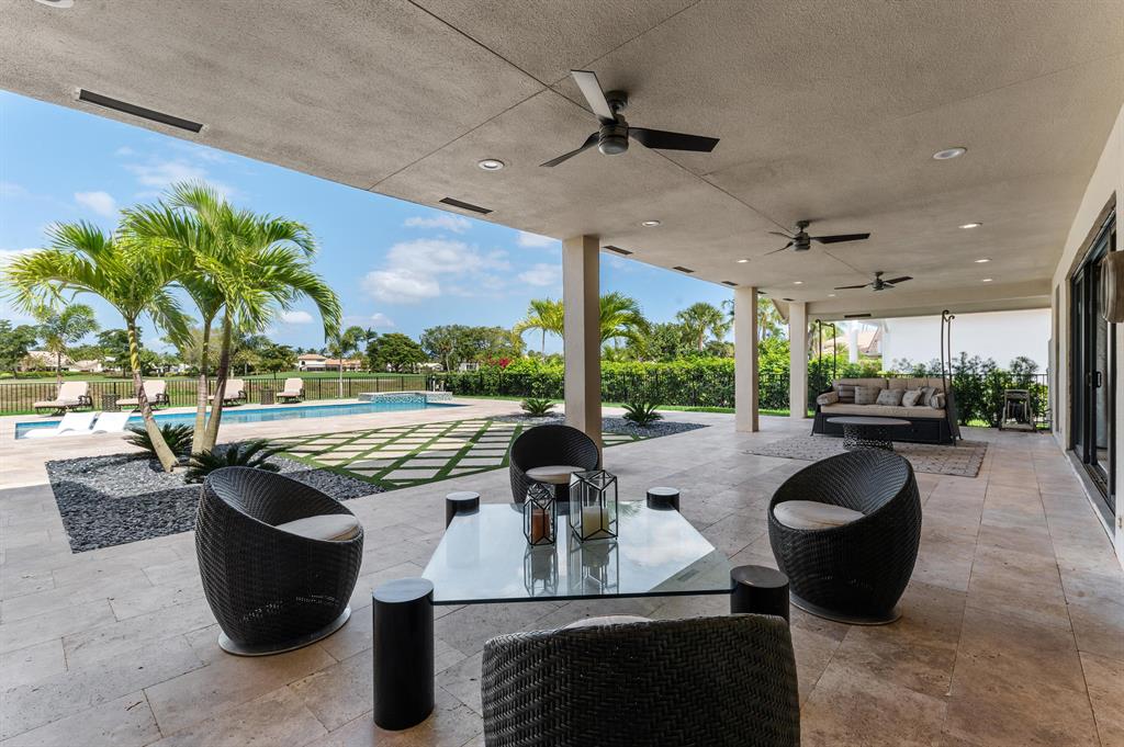 Your search for a truly turn key, ''better than new'' construction home is over. Elegantly situated on almost 1/2 an acre, this sprawling four bedroom, five and one half bath home has been meticulously redone with the highest taste and finishes. As you enter the open, sun-filled single story home you are greeted with soaring ceilings and stunning pool and golf course views through the wall-to-wall impact glass sliders comprising the entire north side of the home. New large format porcelain slab floors run throughout. The sprawling private master suite includes a completely reimagined spa bathroom with double shower, soaking tub, designer vanities, quartzite countertops, and thoughtful accents such as Swavarski crystal drain stops and a bluetooth fan.