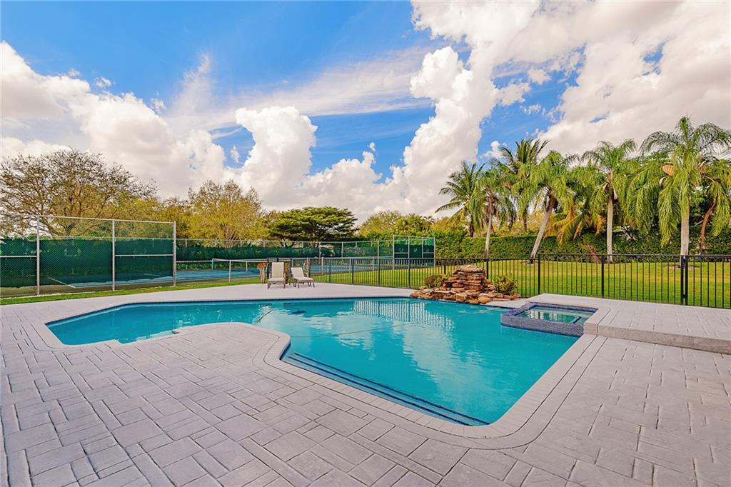 WOW !! CUSTOM ESTATE WITH POOL AND TENNIS COURT ON 1.25 ACRES ! ORIGINAL OWNER HAS METICULOUSLY MAINTAINED THIS HOME SINCE NEW ! OVER 5450 SQ FT UNDER AIR ! 5 BEDROOMS 4 FULL BATHS AND 2 HALF BATH. OPEN FLOORPLAN W/CUSTOM BAR ! GREAT FOR ENTERTAINING ! 2 SIDED FIREPLACE ! BONUS LOFT AREA W/ HALF BATH & REFRIG. NEW TILE ROOF, GUTTERS,SKY LIGHTS @ $ 148,000 JUST INSTALLED ! EXTENSIVE LANDSCAPING ! 3 CAR GARAGE W/ HUGE CIRCLE DRIVEWAY FOR 10 CARS. TWO 5 TON A/C AND 3 WATER HEATERS ! GOURMET KITCHEN W/ GRANITE COUNTERS & WOOD CABINETS W/ GOURGEOUS VIEWS OF POOL, WATERFALL & TENNIS COURT ! SEPERATE MAIDS QUARTERS ! HUGE MASTER BED SUITE W/BUILT IN OFFICE. MASTER BATH TUB,SHOWER, & HOT WET SAUNA ! LARGE COVERED PATIO W/ BUILT IN BBQ ! NO HOA ! MUST SEE ! STONEMAN DOUGLAS HIGH SCHOOL !!