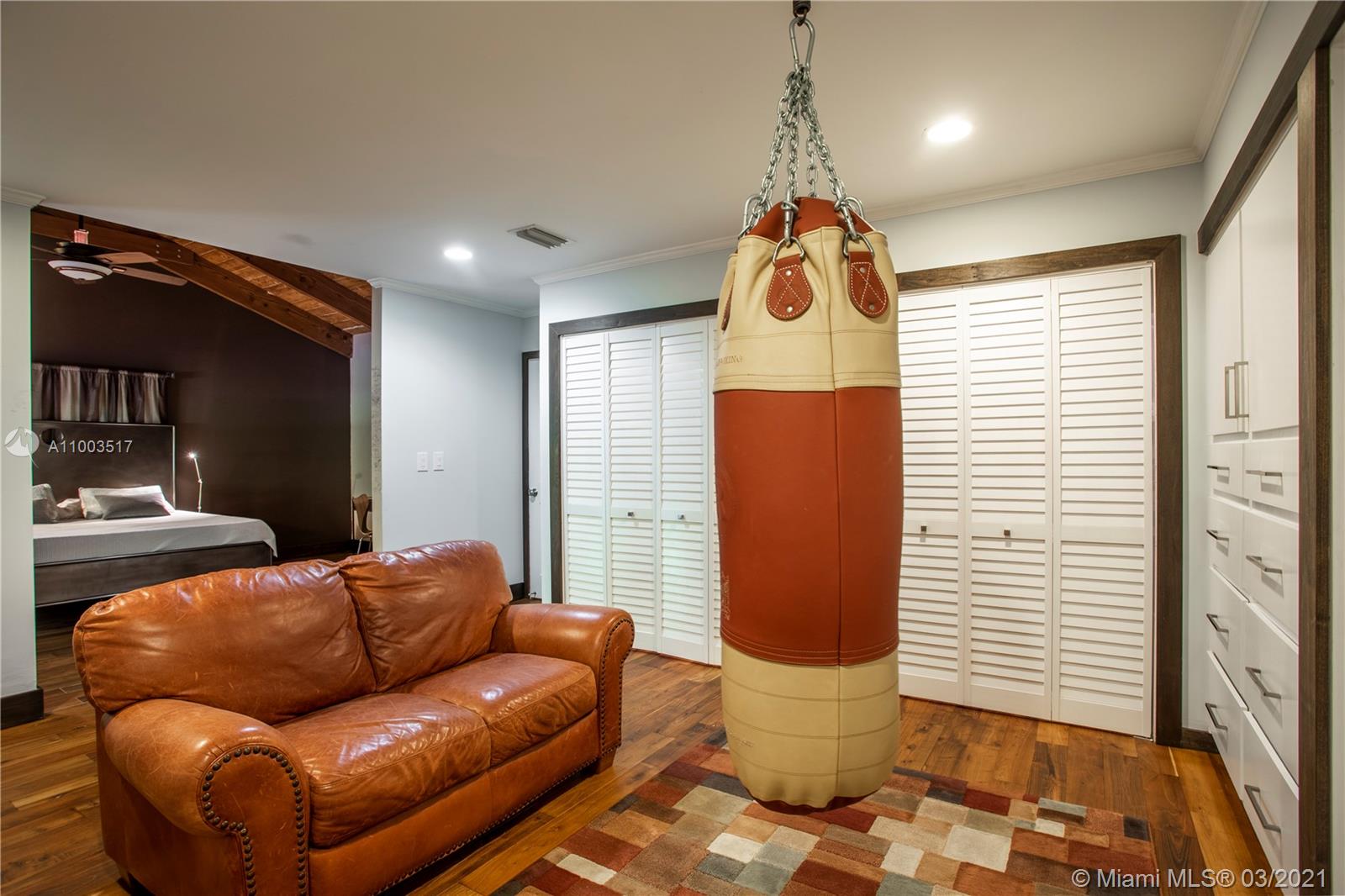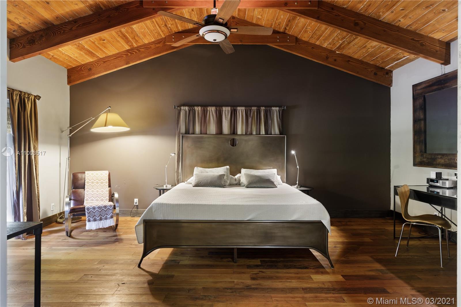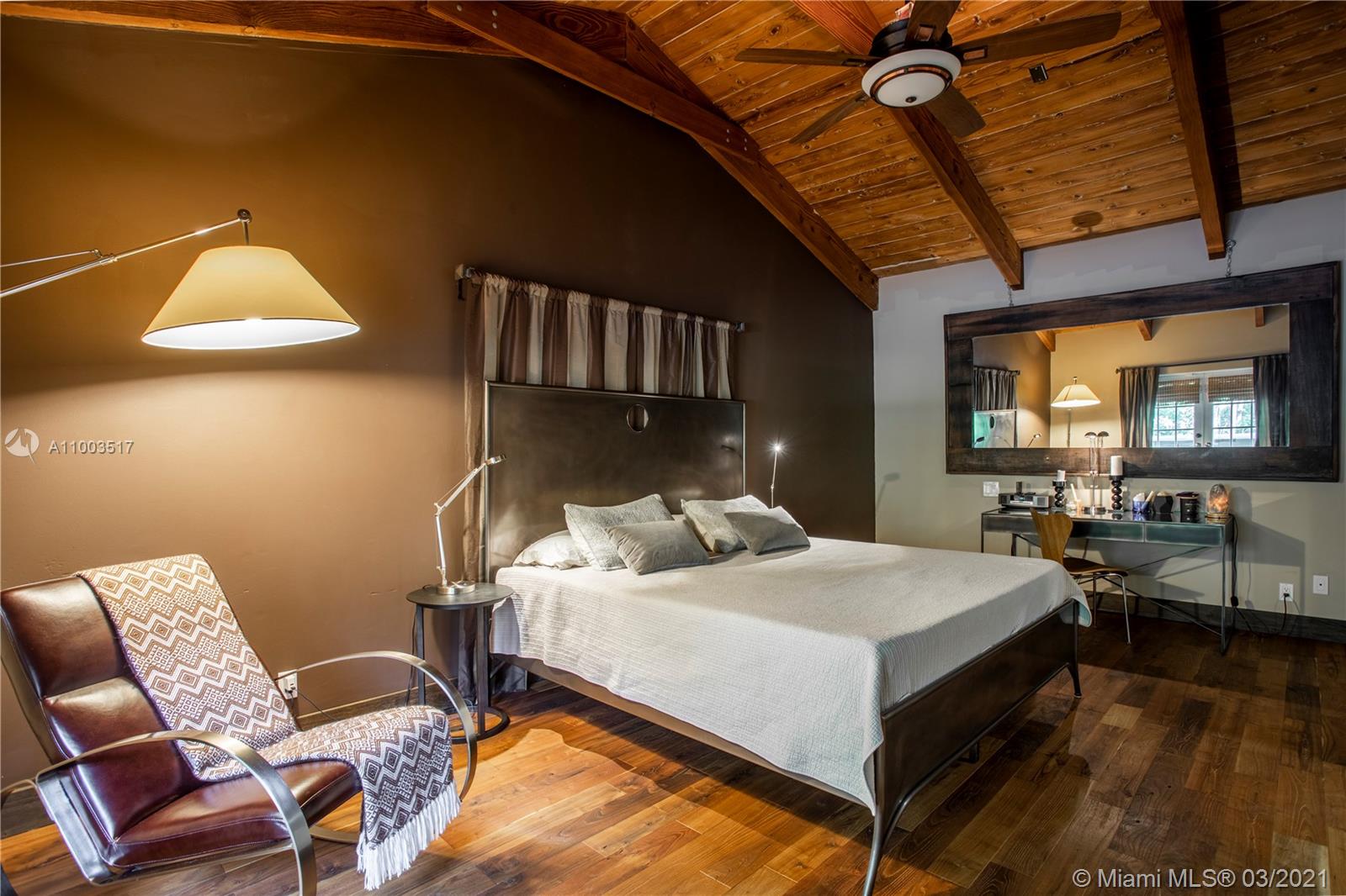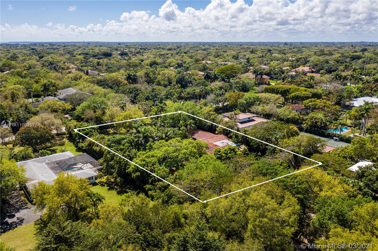 Beautiful Pinecrest ranch style pool home surrounded by lush tropical fruit trees on huge lot (52,000+ sq ft). Five full bedrooms plus an office or den or both, you choose. Master suite is enormous with sunken tub, separate shower, large walk-in closet and dressing room. Features a formal living room with a working fireplace, formal dining room plus a light airy Florida/family room with skylights. Vaulted ceilings with exposed wood beams and plenty of natural light in every room. Other features include a large circular driveway, an electric gated entrance for privacy, a hot tub just outside the master bathroom. Inside the Pinecrest elementary school district.