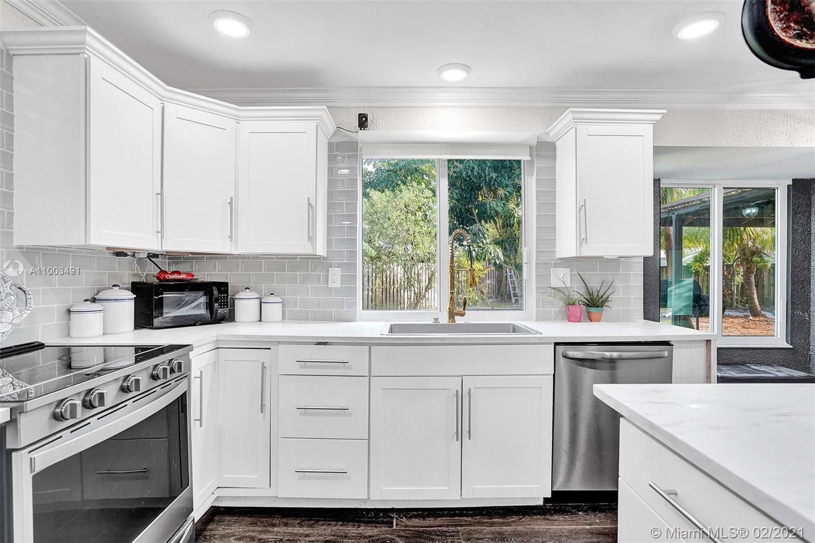 GOREOUS UPDATED TWO STORY, 3 BEDROOMS, 3 BATHROOM HOME WITH LARGE OPEN FLOOR PLAN. FEATURES BRAND NEW KITCHEN WITH LARGE ISLAND, TILED BACKSPLASH, AND STANELESS STEEL APPLIANCESS. LARGE BACKYARD WITH SOLAR HEATED IN-GROUND POOL AND SPA. NEW SOLAR HOT WATER HEATER AND FRUIT TREES. NEW HURRICANE IMPACT WINDOWS AND DOORS. GREAT INSURANCE SAVINGS. SITUATED IN A LOVELY AND VERY PRIVATE COMMUNITY. ONE OF THE LARGEST LOTS IN BROWARD AT THIS PRICE POINT. SUPER LOW ASSOCIATION FEE. *********PLEASE READ BROKER REMARKS*************