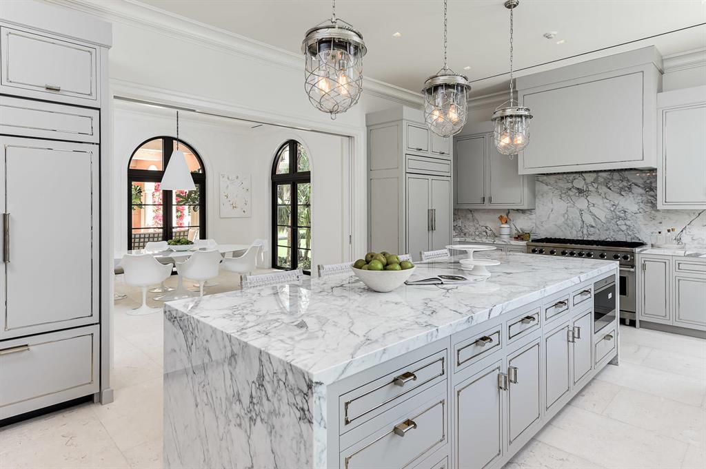 Extensive renovations are now completed at this beautifully appointed Mediterranean Style Mansion. With nearly three-quarters of an acre, this eight bedroom, nine full bathrooms and three half baths property compromises over 14,200 square feet of real estate, including a brand new construction two-story guest house, two car garage, gym, and ample staff accommodations. Exquisite finishes and detailed craftsmanship are evident throughout the residence. Custom cabinetry, kitchen, andbathrooms designed by Waterworks. Outdoor-living heaven situated less than 300 feet from the ocean with deeded beach rights.