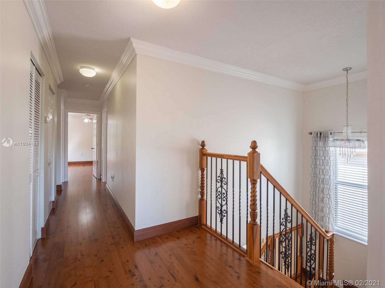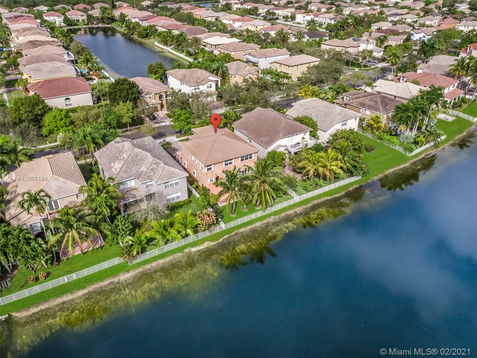 Enjoy outdoor living & beautiful water views - your own private oasis! This gorgeous, gated community home, features 5 bedrooms, 3 bathrooms, marble flooring throughout spacious living areas & high volume ceilings - perfectly light & bright! The generously sized kitchen showcases granite countertops & stainless steel appliances. Full in-law suite w/sitting room & full bath on first floor with separate entrance! Upstairs, enjoy amazing water views from the master bedroom & sitting room! His & her baths & walk-in closets! Upgraded wood flooring throughout second floor. With an extended patio perfect for BBQ & a large oversized fenced yard, this home is ready for entertaining! Accordion shutters for convenience. Fruit trees include mango, coconut, jackfruit, soursop & more! Freshly painted!