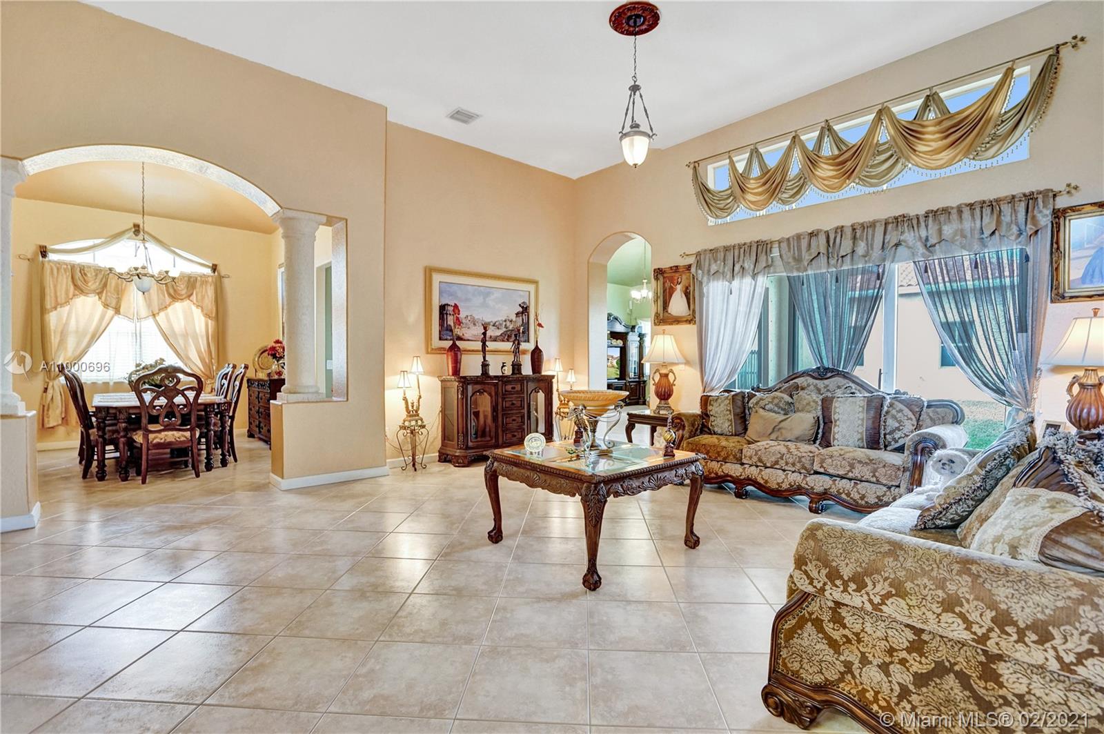 Estate 3 bedrooms 2.5 Bathrooms, one story home in West Miramar. Great floor plan with massive Livingroom, Family room, Formal Dining room with Volume ceilings. If you are looking for large interior space to entertain, this is it! Magnificent Master Bedroom for your relaxation. The home is waiting for you to update with your very own special touches. Amenities include: Man gated community, club house, tennis, basketball, pool with lake view, gym, front lawn maintained by HOA, Cable. This is a phenomenal area close to I75, A rated schools in walking distance, park across the street, shopping, restaurants! PROPERTY SOLD "AS IS". Please do not request any repairs or credit.