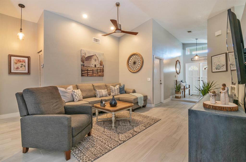 ORIGINAL owner BUT not in original condition! All new porcelain wood plank flooring 9X35 throughout; NEW quartz countertops in kitchen, AC 2019, water heater 2015, freshly painted inside and out & oversized covered patio.Rare opportunity to own in Angelica Gardens community centrally located form I-75, 826, turnpike and Miami Gardens Dr & low HOA.