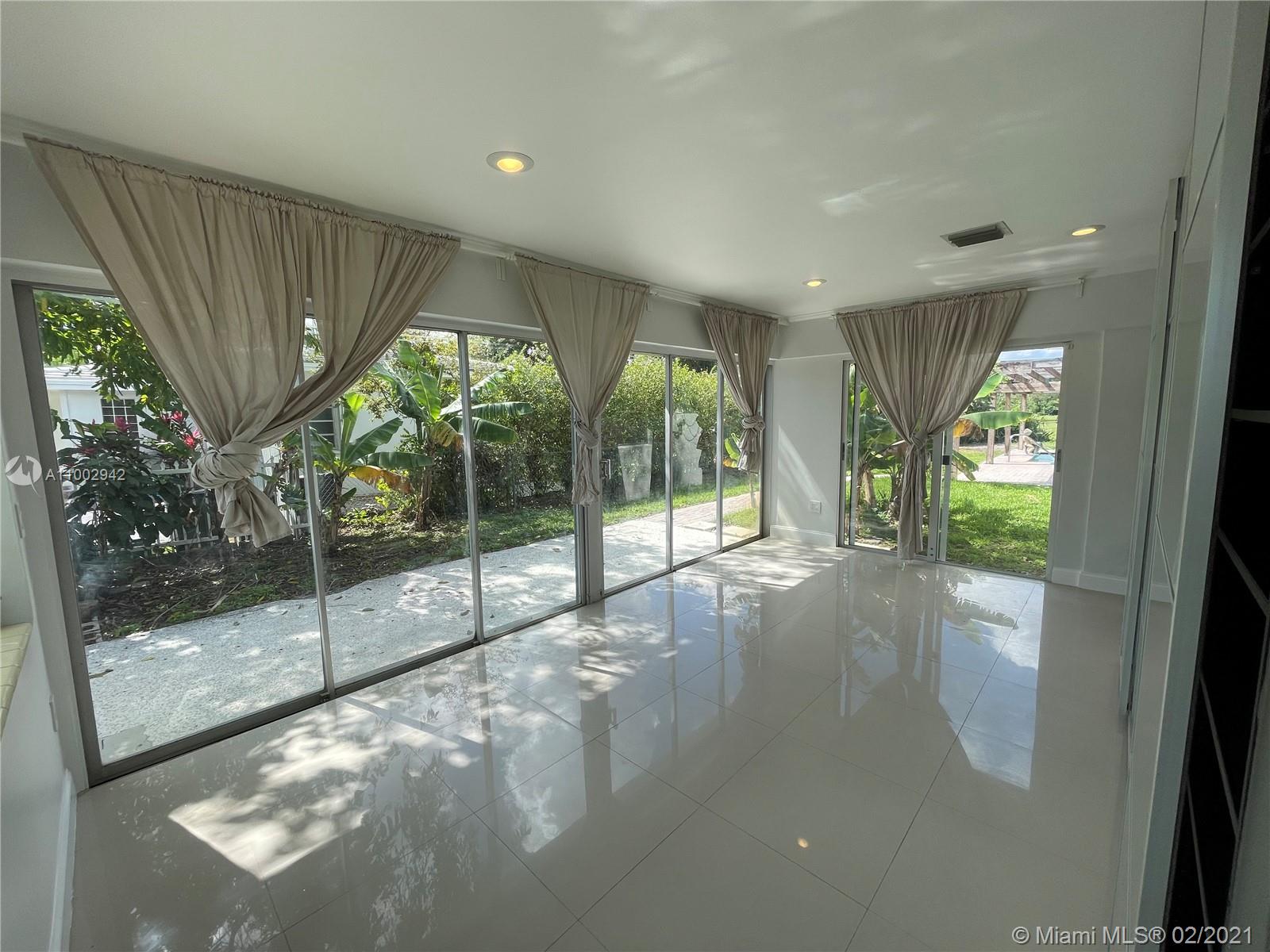 AMAZING 12,000 SQFT LOT ON THE GOLF COURSE WITH A SUBSTANTIALLY REMODELED 3BED/2BATH MID CENTURY HOUSE. LOCATED ON A DEAD-END/SUPER QUIET STREET IN MIAMI SHORES -ONE OF THE MOST DESIRED NEIGHBORHOODS IN MIAMI-DADE-. THIS VERY BRIGHT HOUSE FEATURES PORCELANATO TILE FLOORS, NEW TILE ROOF (INSTALLED IN 2019) WITH A 10 YEAR WARRANTY, MASTER ROOM WITH AN EN-SUITE BATHROOM THAT OVERLOOKS THE POOL/PATIO/GOLF COURSE AND HAS A SPACIOUS WALK-IN CLOSET, A FORMAL DINING ROOM WITH FRENCH DOORS OVERLOOKING THE PATIO, STONE COUNTERTOPS IN THE KITCHEN, COOKING ISLAND, ATTACHED GARAGE, OUTDOOR BELOW-THE-GROUND SWIMMING POOL, AND MORE. IT COMES EQUIPPED WITH STAINLESS STEEL APPLIANCES, CENTRAL AC UNIT WITH NEST THERMOSTAT, STEAM ROOM AND MORE. COME AND SEE FOR YOURSELF!