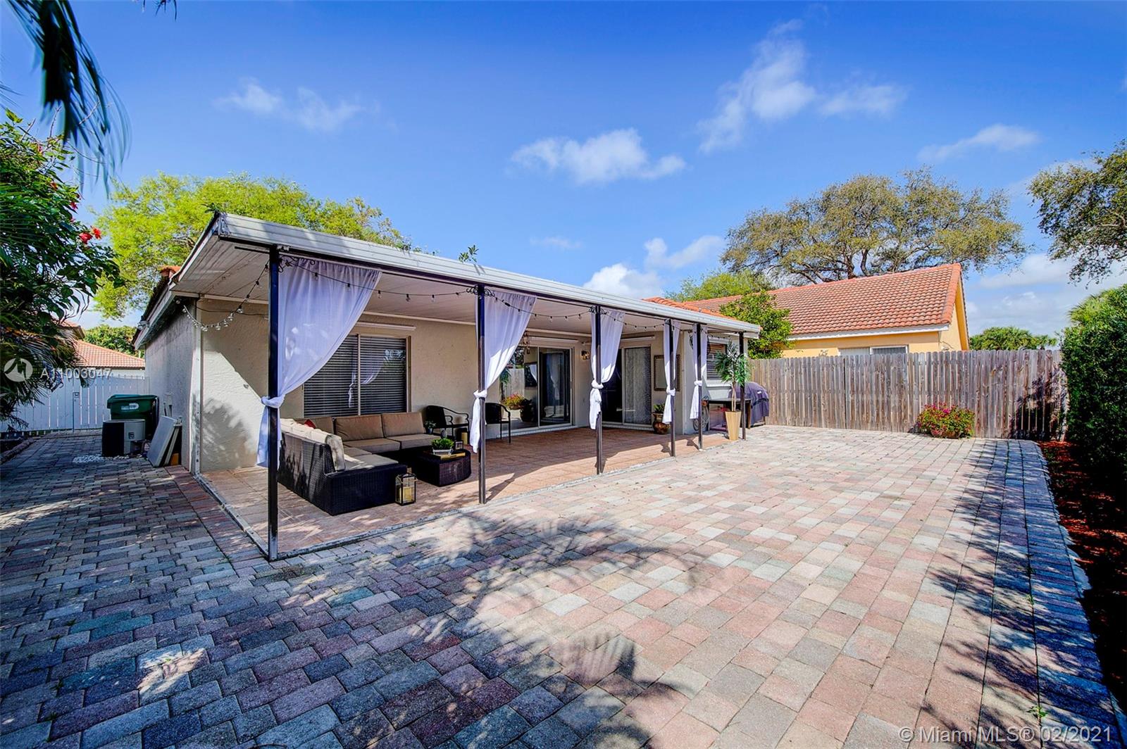 Nestled between the Dade and Broward County line, this 3/2 home with garage. This newly painted exterior and interior. Paved Driveway and backyard. Six-foot hedges for privacy. The obscured double doors welcome you to the popcorn-free vaulted ceilings. The open concept lends itself to holding conversations from the living room to the dining room area. White quartz countertops and backsplash that draw the light from the sliding glass doors and new windows. Updated kitchen cabinets and stainless-steel appliances. Porcelain tiles throughout the house and newly painted white walls. laminate floors in the bedrooms. The backyard is ready for hosting barbecues under the shade of the patio porch. Quick access to major highways, minutes from The Shops at Pembroke. This home is move-in ready!