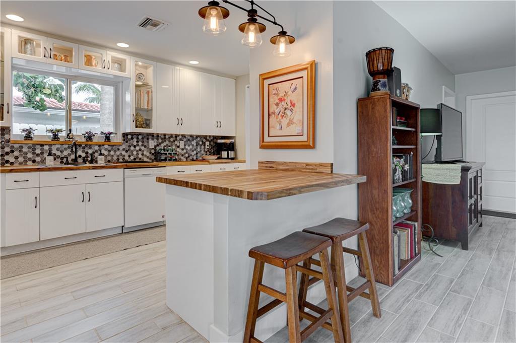 Ultimate indoor/outdoor living with South Florida vibe! Lovely upgraded 3bedroom/2bath home minutes from Hollywood beach but still in a cozy quiet neighborhood. Ceramic tile floors throughout an open concept living rm/dining area w/large kitchen w/loads of cabinets, pull out drawers + butcher block countertops. Recessed lights w/dimmers, ceiling fans throughout + impact windows all create that bright open feel. Bedrooms have black out shades and bathrooms have been newly retiled. One bedroom presently is perfect home/school work space. Indoor laundry room w/extra closet hosting tankless gas water heater + extra storage. Tropical paradise yard affords heated pool w/colored lights. Outdoor Kitchen w/mini fridge + gas bbq, all enhance this friendly gathering spot 4 family + friends to enjoy