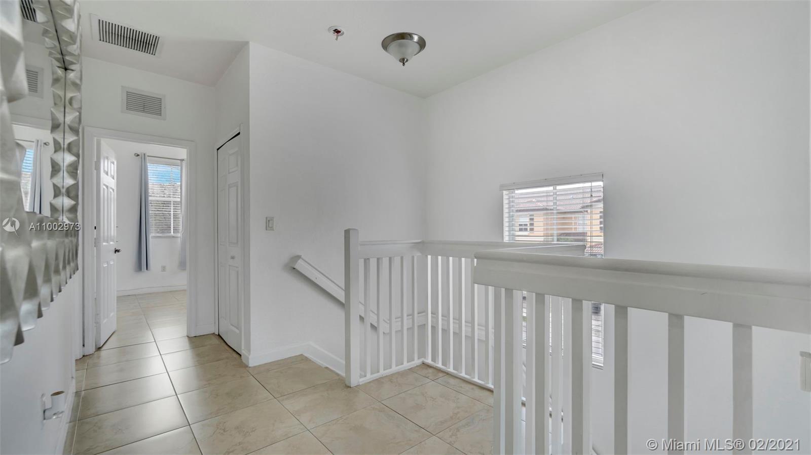 Great corner townhome in a wonderful Doral Community. It is move-in ready and home features 1 car garage with 4 bedrooms and 2.5 bathrooms, with tile throughout, including second story. Home has a nice flow, lots of natural light, with high ceilings. Kitchen is completely and tastefully remodeled and has an open concept with stainless steel appliances including farmhouse sink. Garage has been converted to a gym with AC, with enough space for storage. Garage door is still operational and can be easily converted back. It has a fenced patio, 24 hour security patrol. Easy access to highways, shopping and great schools.***Open House this Saturday February 27th from 1pm - 3pm. Showings will only be held during open house. Call or text listing agent