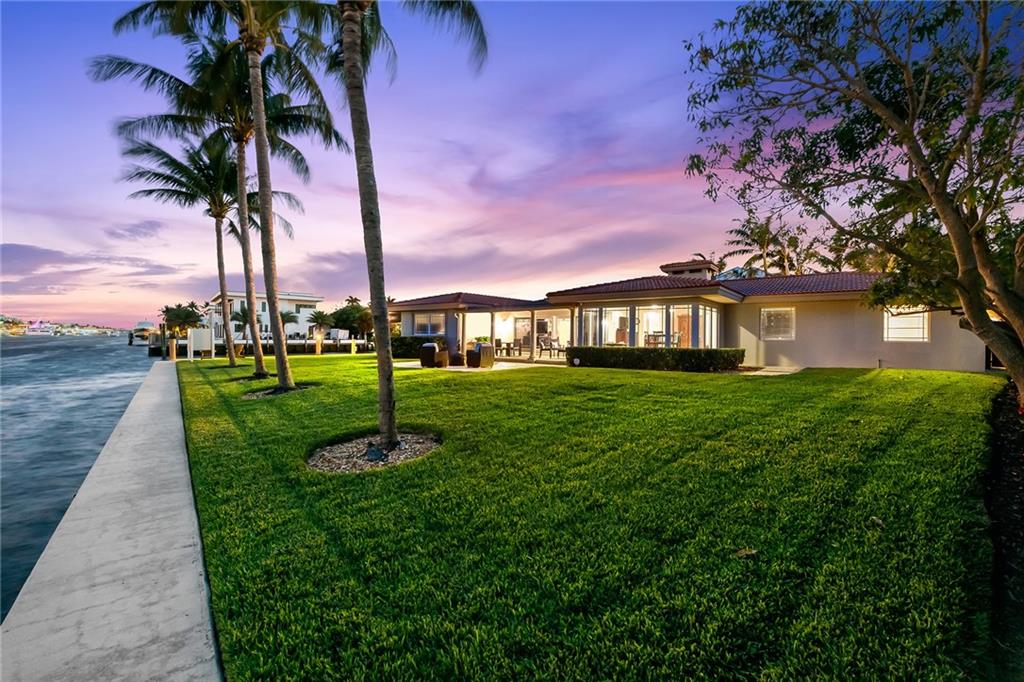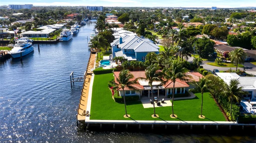 STUNNING DIRECT INTRACOASTAL OVERSIZED POINT LOT (15,690 SQ FT) WITH THE MOST DESIRABLE SE LOCATION, 230 FT TOTAL WATERFRONT, WITH 123 FT ON EXTRA WIDE SIDE CANAL TO DOCK 100+ FT MEGA YACHT, WITH CLOSE PROXIMITY TO OCEAN INLET. TREX COMPOSITE DOCK WITH SHORE POWER & 20,000+ LB BOAT LIFT. THIS HOME HAS A NEWER S-TILE ROOF,ALL IMPACT WINDOWS & DOORS,NATURAL GAS,NEWER AC UNIT. THE PERFECT HOME FOR ENTERTAINING, WITH 2 LARGE PATIOS,ONE OVERLOOKING THE POOL & CANAL; THE OTHER WITH A COVERED VERANDA OVERLOOKING THE INTRACOASTAL TO ENJOY THE DAILY PARADE OF STUNNING BOATS! A GOURMETS DELIGHT KITCHEN WITH GAS COOKING ,S/S APPLIANCES & GRANITE COUNTER TOPS, MASTER BEDROOM HAS MARBLE FLOORS, WALKIN CLOSET, SPA TUB & GLASS SHOWER, NEWER POOL EQP. & GAS POOL HEATER. TANKLESS GAS HOT WATER HEATER