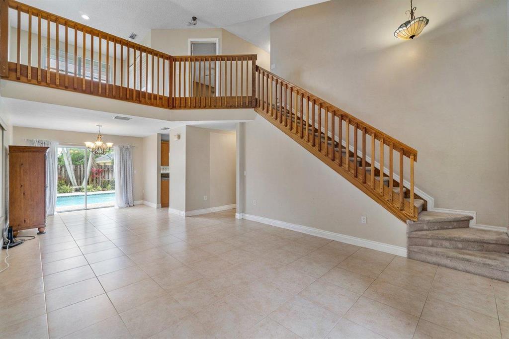 Gorgeous 3 bedroom with open loft, 2.5 bath two-story single family home. Includes spacious area with vaulted ceiling as you walk in. Enjoy kitchen with kitchen counter tops and matching granite backsplash. Tile throughout first floor and carpet throughout second. Spacious master bedroom and bathroom suite includes walk-in closet. Upstairs loft can be converted into fourth bedroom and has been converted by many other homeowners in Sawgrass Estates. Low maintenance fee in a great location minutes away from Sawgrass Expressway, BB&T Center and Sawgrass Mills Mall. Enjoy this serene fully fenced lot and relaxing backyard with pool with changing color LED light in this family friendly neighborhood. All bedrooms are located upstairs.