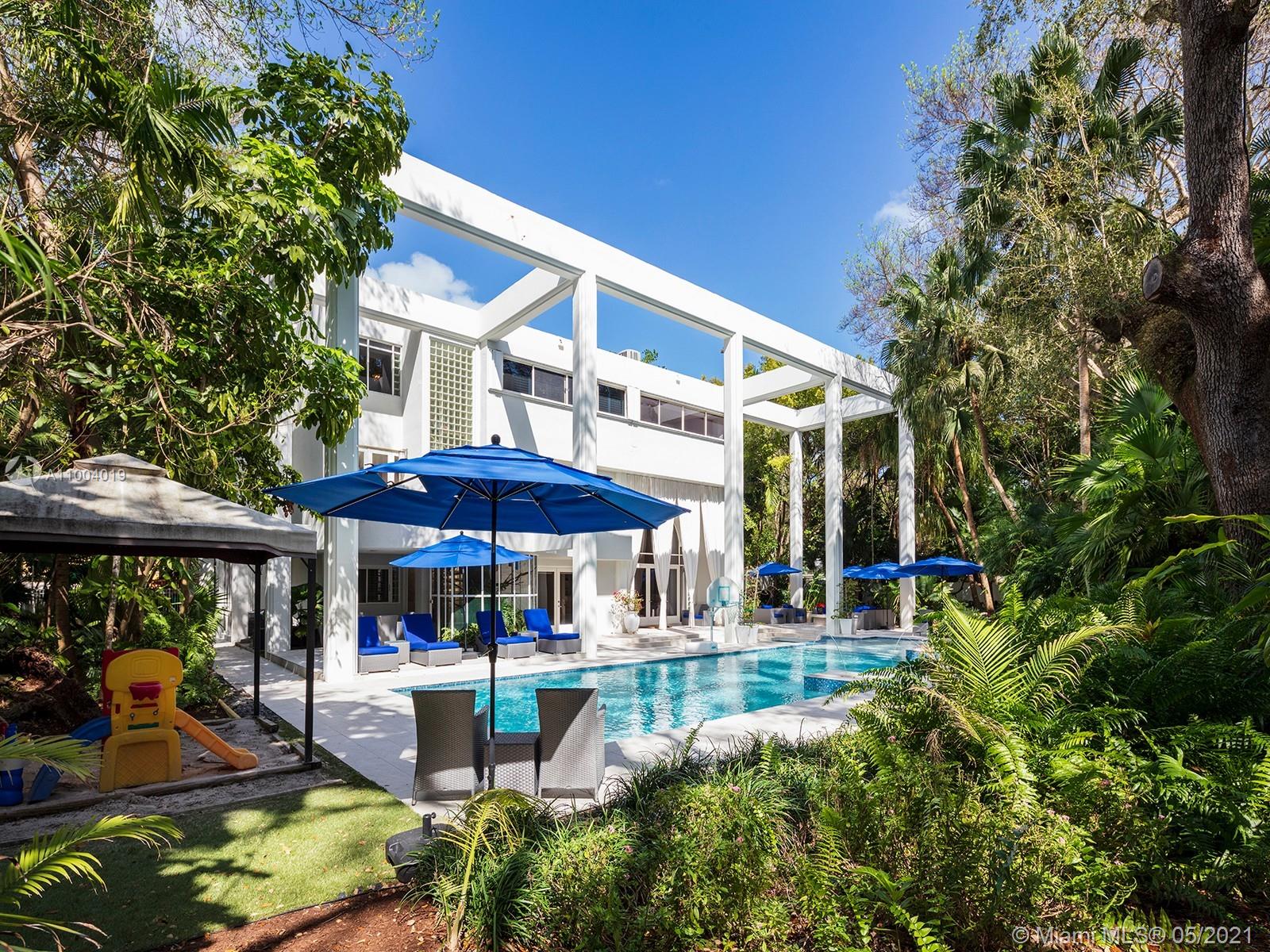 One-of-a-kind tri-level estate located in Devonwood, an upscale community of only 77 estate homes w/ private police patrol. This unique home designed by architect David Wolfberg, is nestled in a tropical oasis w/ lush foliage. Greeted on the second-floor w/ dramatic volume ceilings, grand foyer, expansive formal living & dining room w/ access to balcony. Gourmet chefs kitchen w/ pantry, breakfast area, spiral staircase leading to ground floor. First floor offers, large family room, guest room & media room. Master suite located on third level w/ sitting area, open balcony, huge walk-in closet, & spa like bathrm. Discover an impressive backyard surrounded by natural foliage w/ resort-style pool & spa, open terrace, bird aviaries, koi ponds, walking trail, basketball court & kids playground.