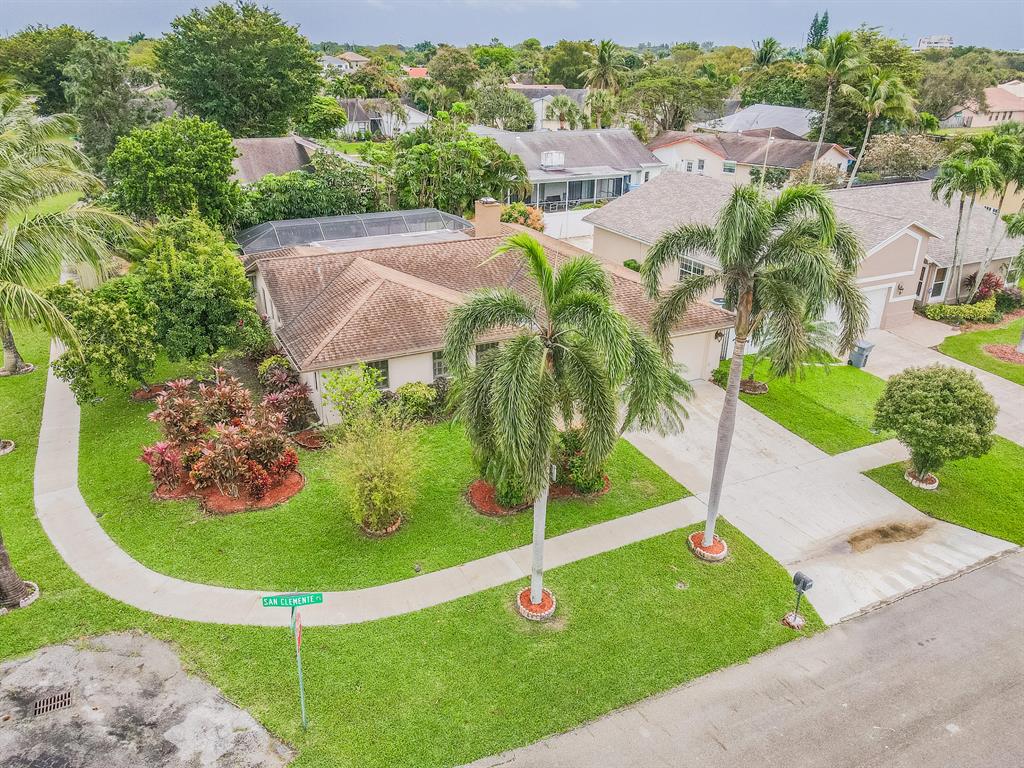 Fabulous Floridian Home with Sparkling Pool! Beautifully built in 1982 and marvelously maintained, this 3BR/3BA, 1,766sqft abode sits on a meticulously landscaped 0.17+acre corner lot. Enter the home to find a warm color scheme, crown molding, durable tile floors, and vaulted ceilings. The open-concept kitchen has stainless-steel appliances, granite countertops, wood cabinetry, breakfast bar, and an adjoining family room w/fireplace. For outdoor fun, the home includes a covered lanai and an oversized screened-in swimming pool! Every evening is a serene experience with a master bedroom, which has hardwood floors and en suite. Other features: 2-car garage, laundry room, hardwood floors in bedrooms, full hurricane protection panels, close to places of worship, and more! Call now for a tour!