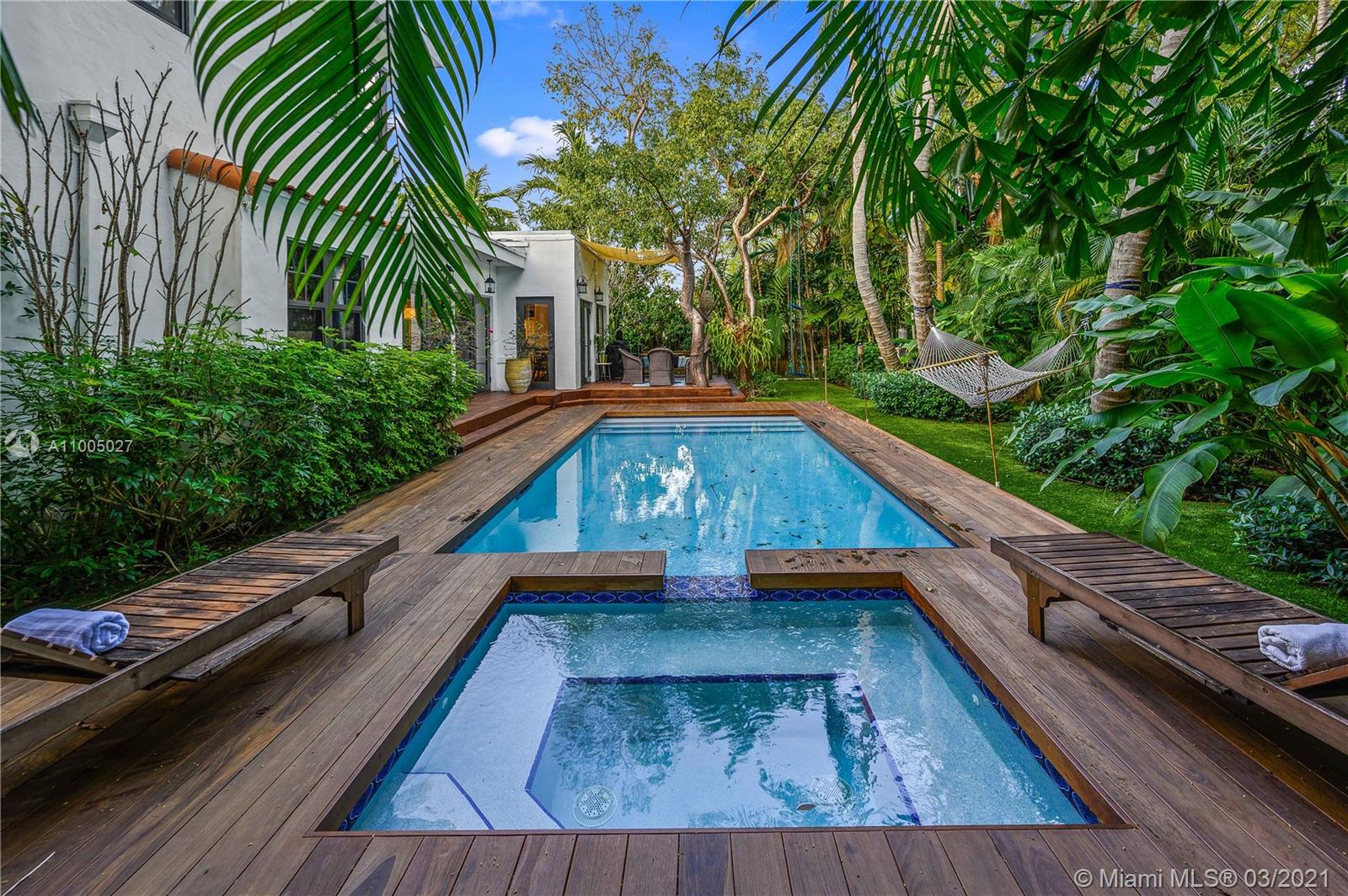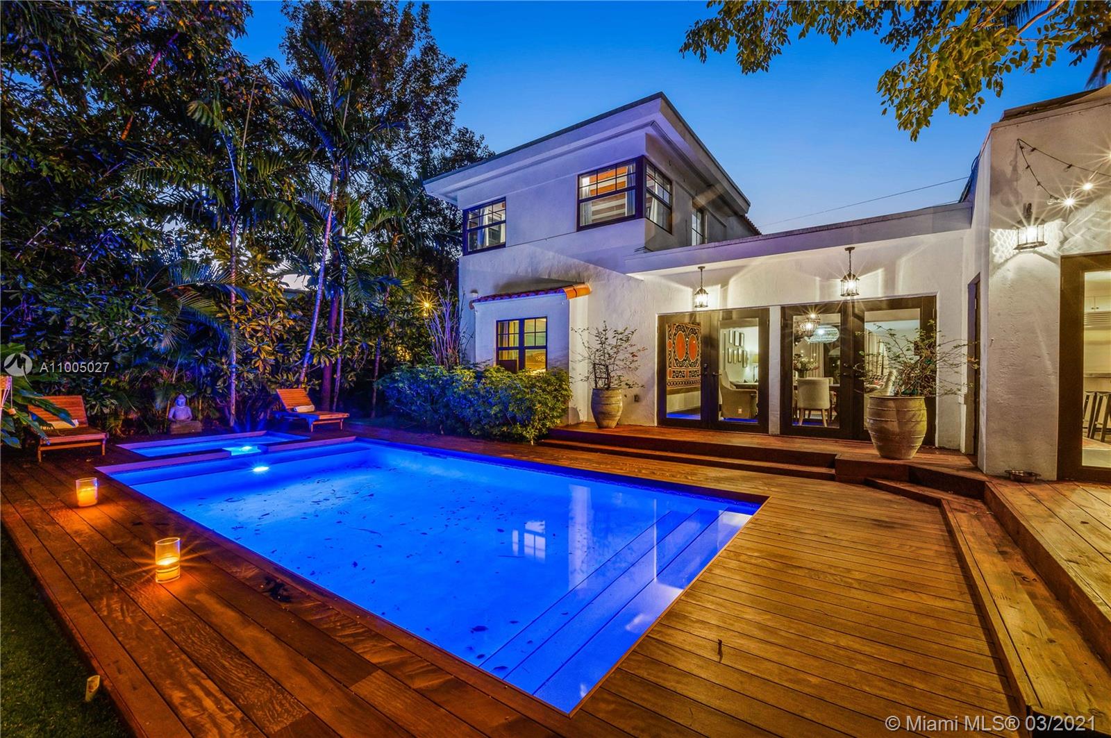 Located in the heart of Miami Beach. This dreamy Mediterranean 2 story home is in the most sought-after neighborhood. With 2900+ SQFT, 3 bedrooms, 2.5 bathrooms plus den is a modernized romantic home with impact windows and doors throughout. 5 year old roof, 2 new A/C units, new electric gate, heated & salt water pool & jacuzzi, IPE pool deck, smart home. Chicago brick drive and walkways. Gas powered home, lush & mature landscaping. complete privacy around entire home. Chef's eat-in kitchen with 48" Viking stove, Miele appliances & sub-Zero refrigerator & freezer, custom gym built layout in 1 car garage. Perfect rooftop space to create an amazing roof top deck and movie watching area. Minutes away from Lincoln Rd, Sunset Harbor, Design District & Miami/Ft L Airports.