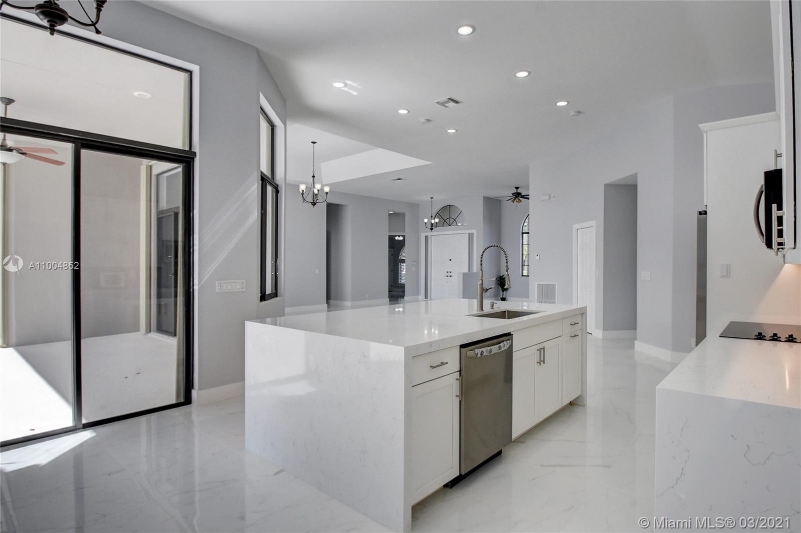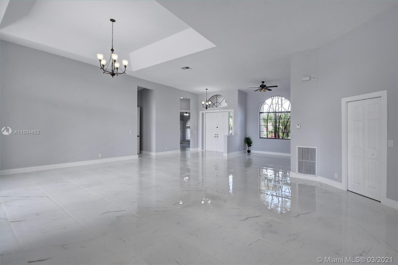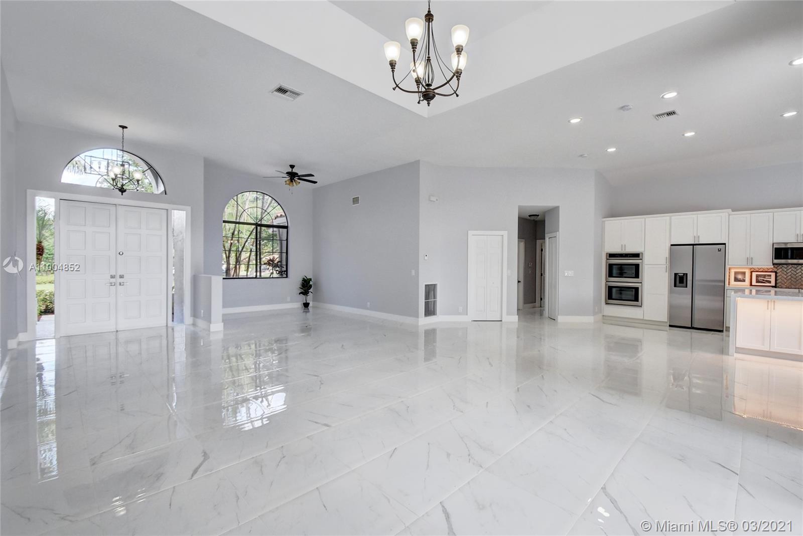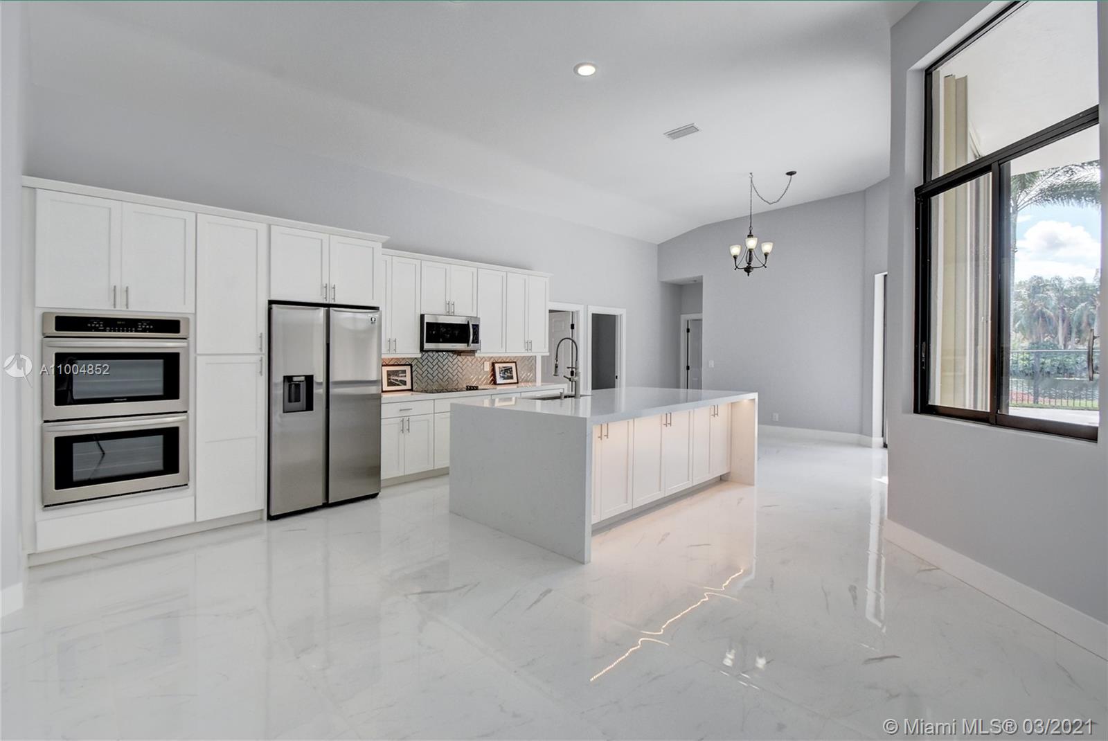 This move-in ready 5 bed/5.5 bath/3 Car Garage is in an Exclusive Community which is double gated. This 1 story Pool home is completely renovated. This home sits on an oversized corner lot (22,093 sq ft). Features include: High ceilings throughout this model looking home, formal dining room, Porcelain tile flooring, living room that flows to an open kitchen layout, coffered ceilings, expanded Quartz kitchen Counters, soft-close kitchen cabinet drawers, double wall ovens, new SS Appliances, glass stove top, big pantry & cabana bath. All bedrooms w/en-suite bathrooms. Master has 2 walk in closets, floating tub & all baths have new vanities w/quartz. Other features include built in closets, New AC, Accordion shutters, fenced pool. "A schools for this area!"