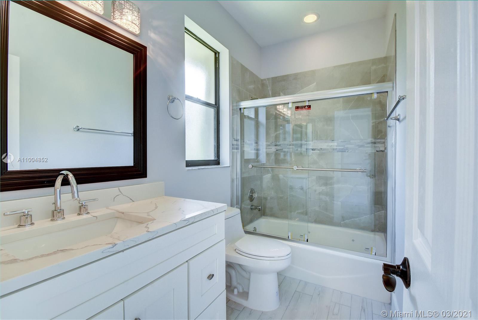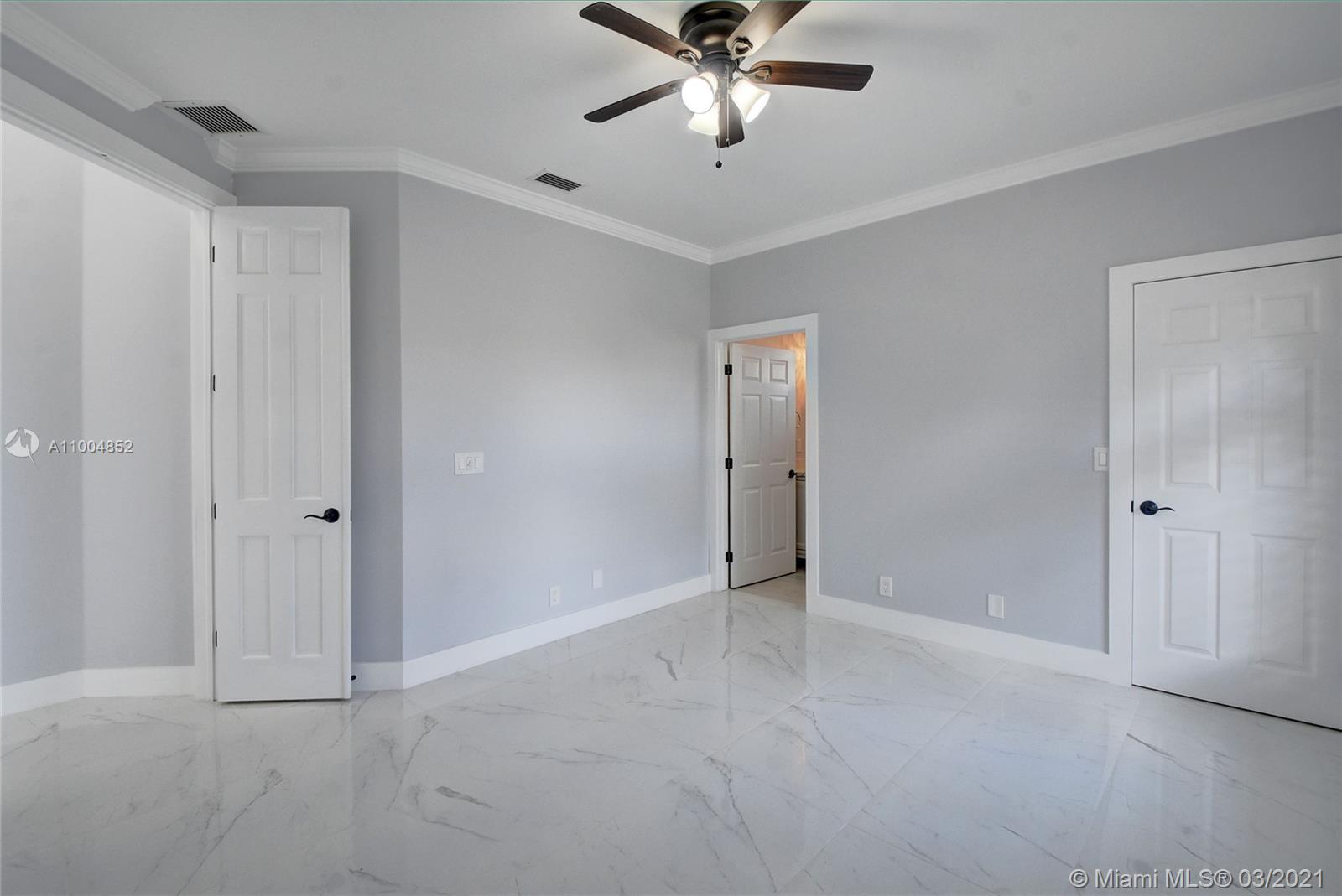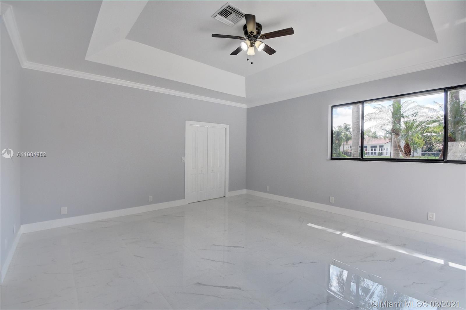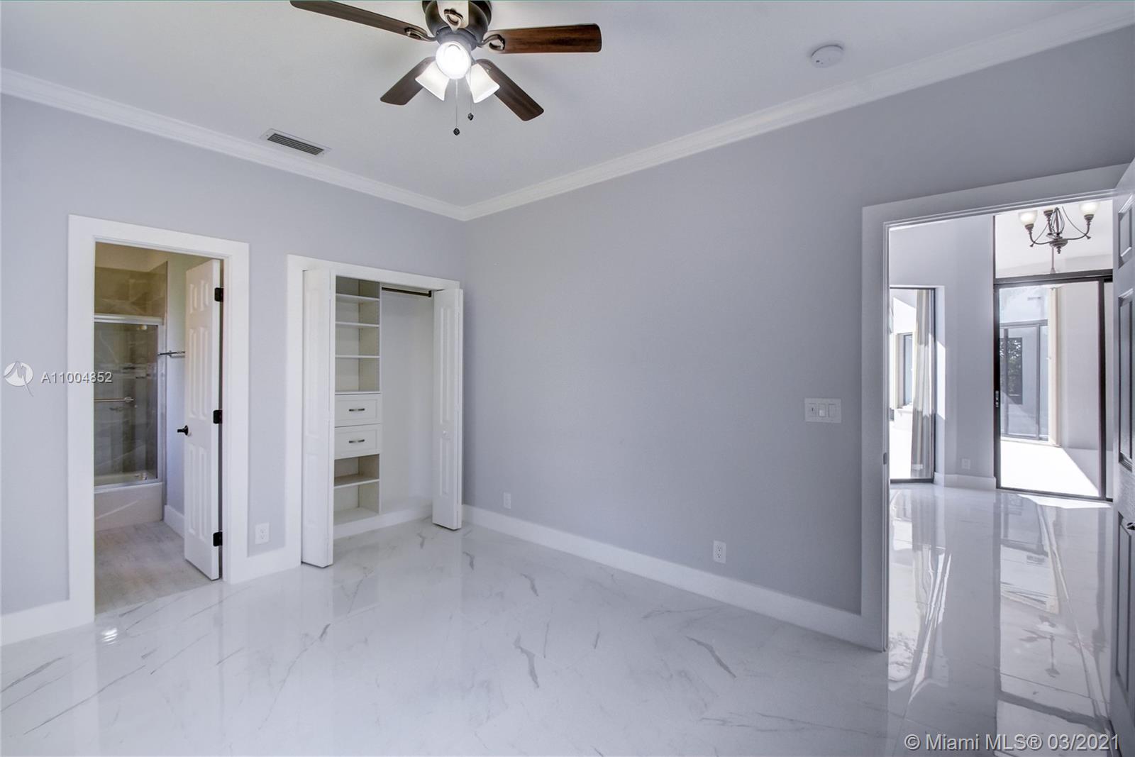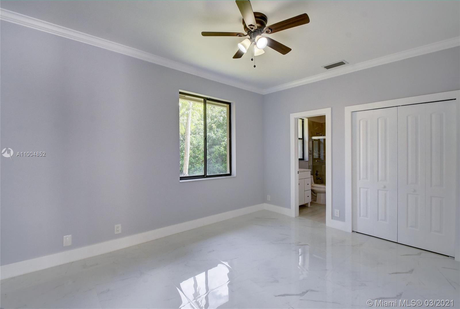 This move-in ready 5 bed/5.5 bath/3 Car Garage is in an Exclusive Community which is double gated. This 1 story Pool home is completely renovated. This home sits on an oversized corner lot (22,093 sq ft). Features include: High ceilings throughout this model looking home, formal dining room, Porcelain tile flooring, living room that flows to an open kitchen layout, coffered ceilings, expanded Quartz kitchen Counters, soft-close kitchen cabinet drawers, double wall ovens, new SS Appliances, glass stove top, big pantry & cabana bath. All bedrooms w/en-suite bathrooms. Master has 2 walk in closets, floating tub & all baths have new vanities w/quartz. Other features include built in closets, New AC, Accordion shutters, fenced pool. "A schools for this area!"