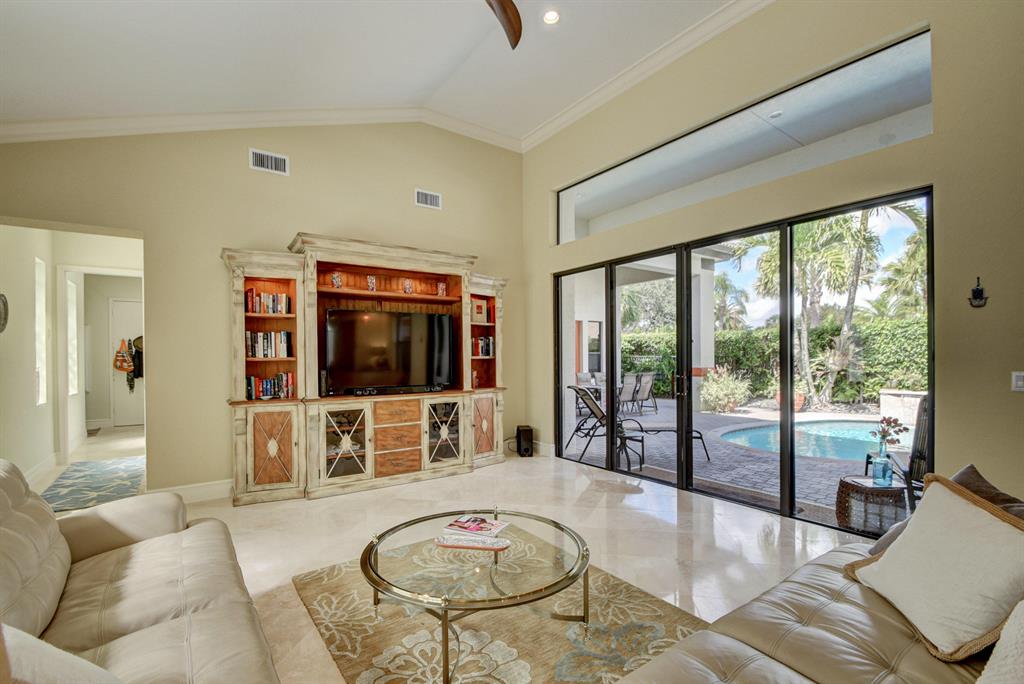 WELCOME HOME!! Beautifully Cared For & Maintained. A TRUE GEM. Courtyard Home. Lots of changes and upgrades in 2016 (Owner purchased Nov 2015). 2016: A/C, 2 Zone in Main Home, 1 in Guest House. Electrical Panel, Hot Water Heater. NEW Kitchen, Appliances to name a few...list to be submitted. Heated Pool Serviced Regularly. Gutters cleaned recently. Mrs. CLEAN Lives Here. Marble Floors (Recently Cleaned), Carpet in BR's (Stanley Steamer Cleaned a few weeks ago). 3 BR & 3 1/2 Bath in Main House and Guest House (4th BR/Office/In-Law Suite) has a Bathroom. Walk-In Closets in Master BR. Open Kitchen concept onto the family room. Formal Dining Room & Living Room, WET BAR, Perfect layout for Entertaining & Guests. Boca Pointe CC is NOT mandatory membership; OPTIONAL membership. Vaulted Ceiling.