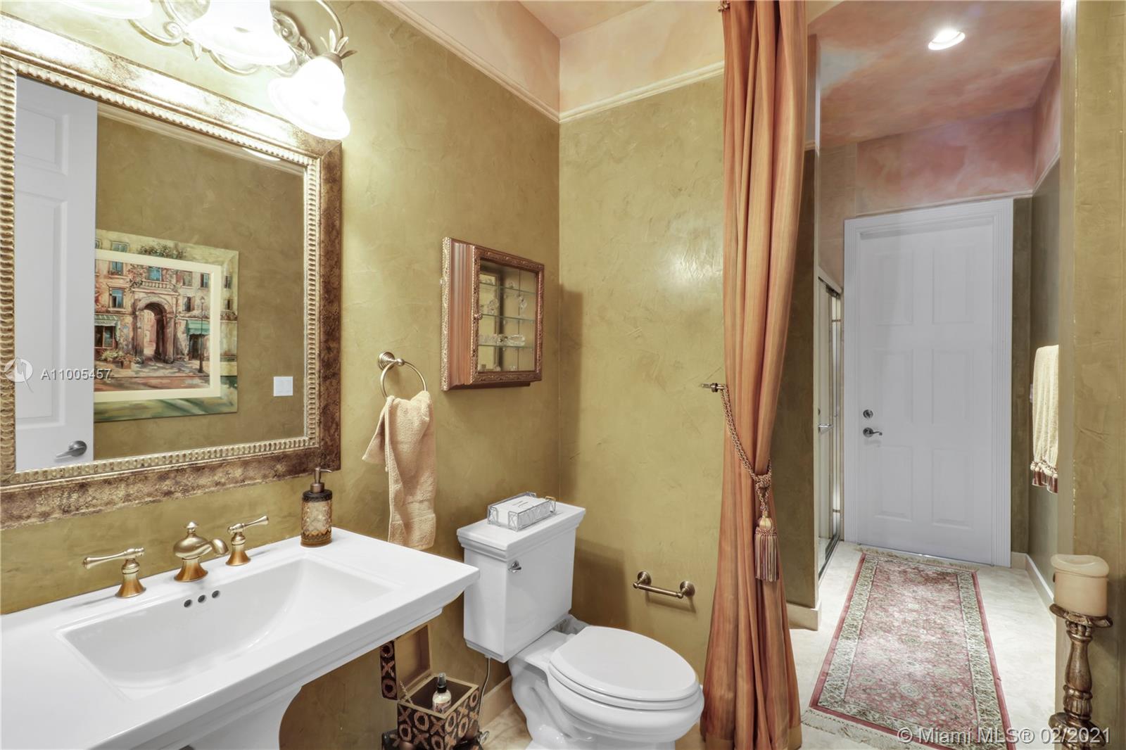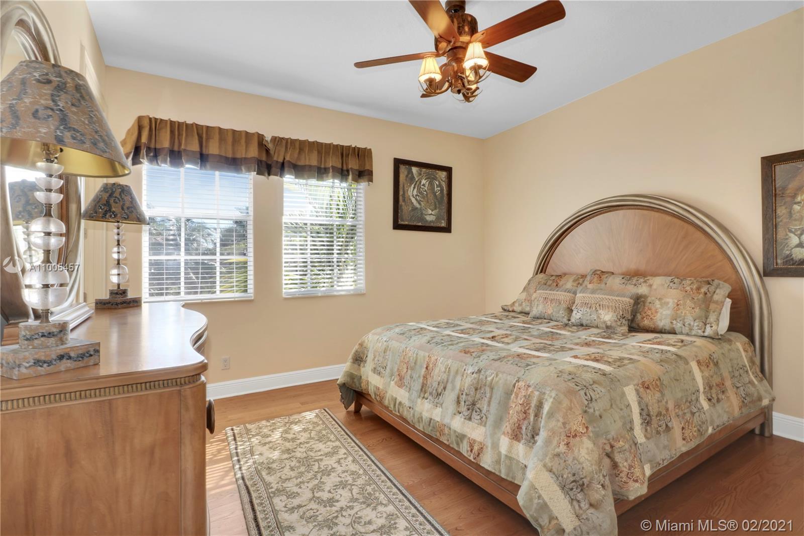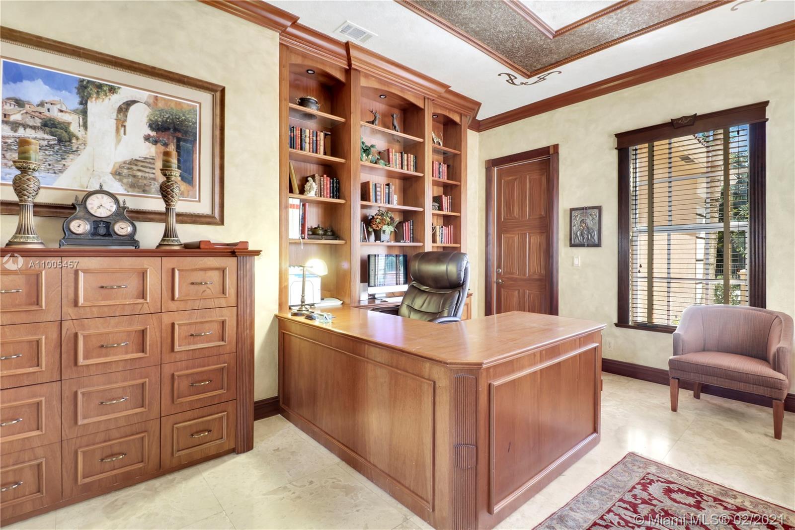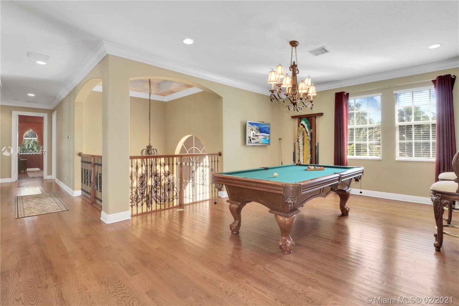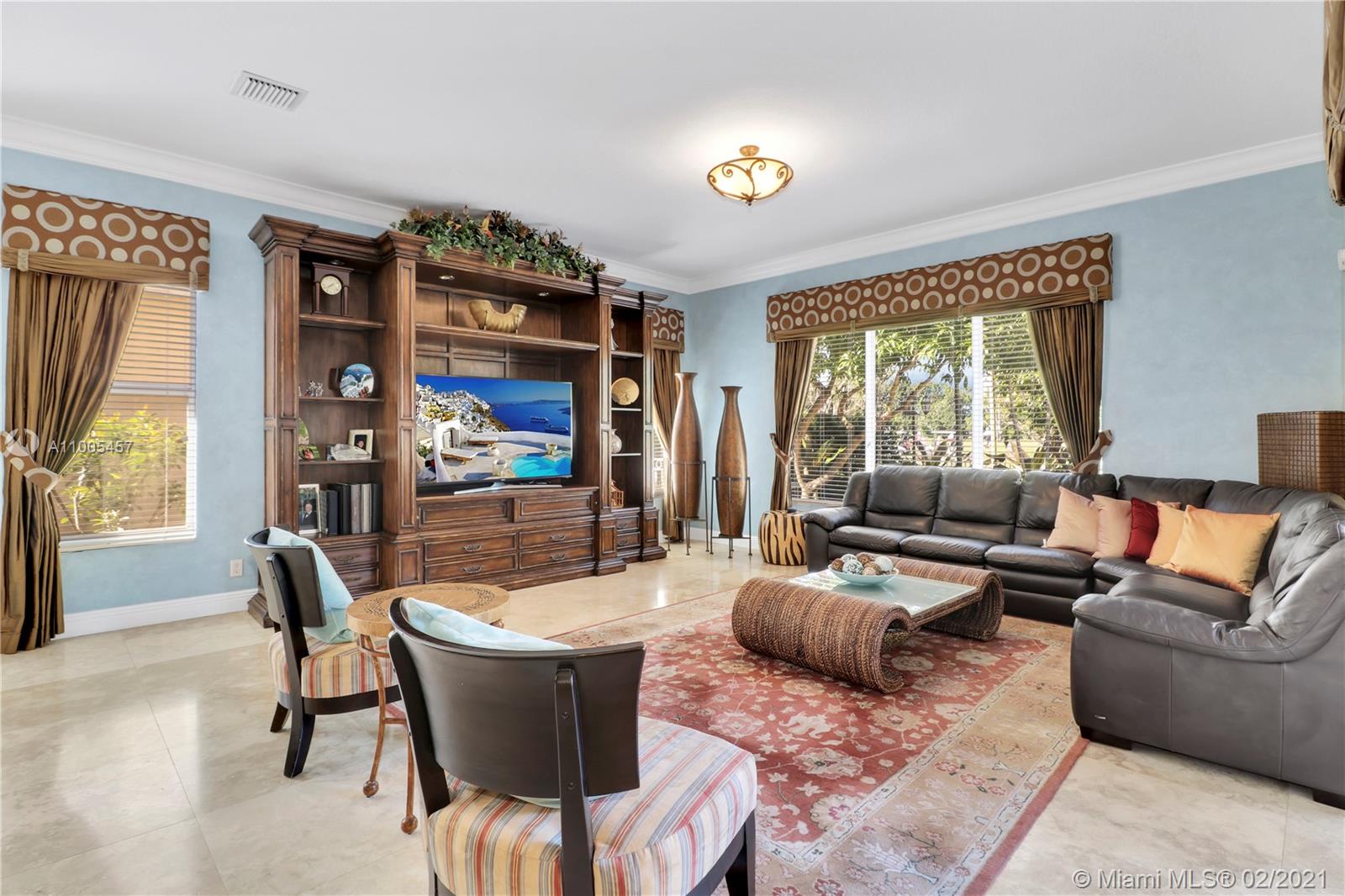 Luxurious 6 Bedroom(6th bedroom used as office)5 Bath with amazing golf-course view, spa/pool home in exclusive double-gated Enclave section of Grand Palms golf resort. Downstairs offers: master bedroom w/2 closets, spa-like master bath, office, dining room, kitchen, laundry room, walk-in pantry, custom bar, family room, & two 2 car garages w/ custom cabinets. Upstairs: Jack-and-Jill bath adjoined to 2 bedrooms, plus two bedrooms with en-suite baths, upstairs loft with custom bar. Marble & real wood floors throughout. Upgrades include: Subzero & Thermador appliances, glass-etched front double door, custom curtains/blinds, impact windows, custom fireplace & faux-painting, $5K venetian plastered guest bath, professionally decorated by Susan Rich. Sold FURNISHED. New paint exterior in 2020.