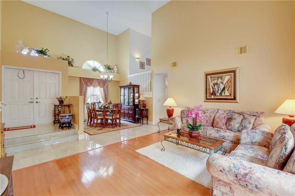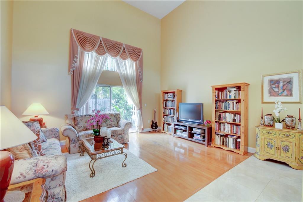 This gem of a home at the Residences of Sawgrass won't last! This very spacious two story home features: 4 ample bedrooms, 2 upstairs bathrooms and a convenient half bathroom downstairs, 2 car garage, beautifully updated island kitchen with granite countertops and wood cabinets, ceramic tile and hardwood floors throughout the downstairs and laminate wood flooring upstairs, high ceilings, large and airy living and dining areas, a very roomy master suite with a walk in closet and a master bath with dual sinks and separate shower and tub, big fenced in yard with enough room for a pool and 2 concreted sitting areas that are great for entertaining, family gatherings and BBQ. Excellent location! Just a fingertip away from Sawgrass Mills, I75 and great dining. Low association fee! Move in Ready!