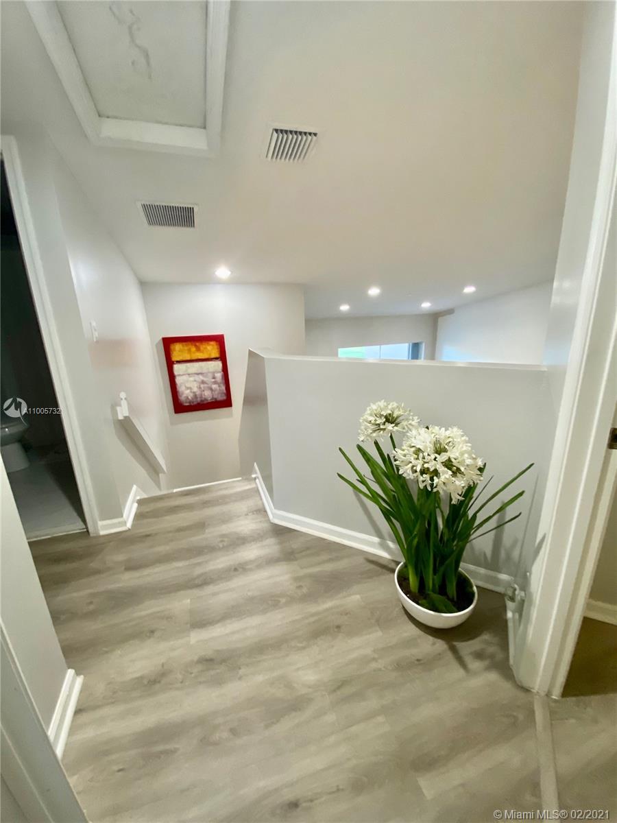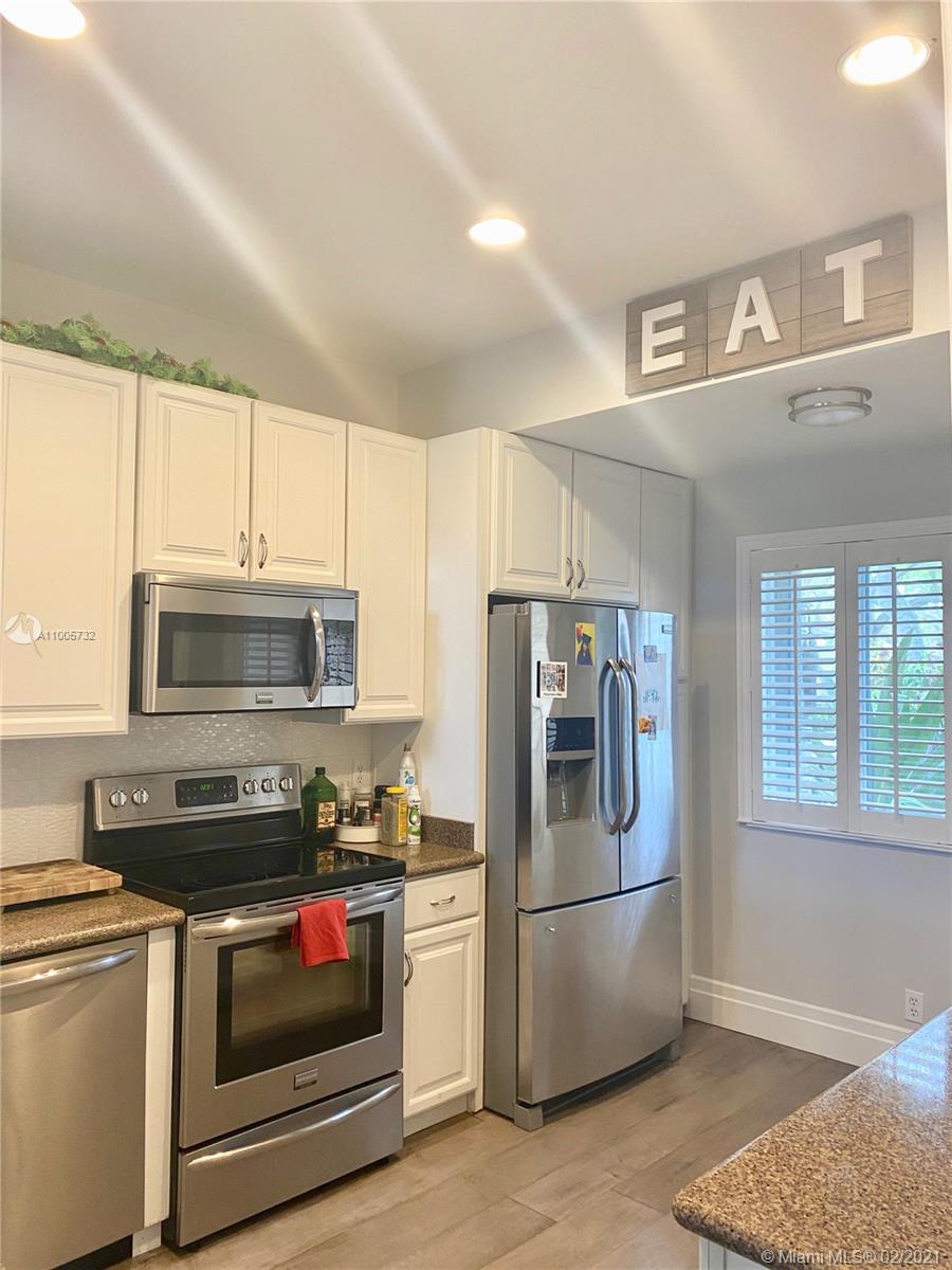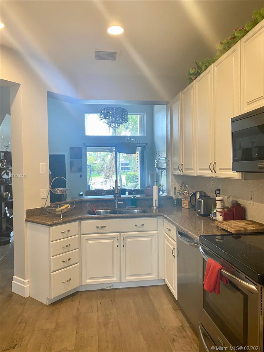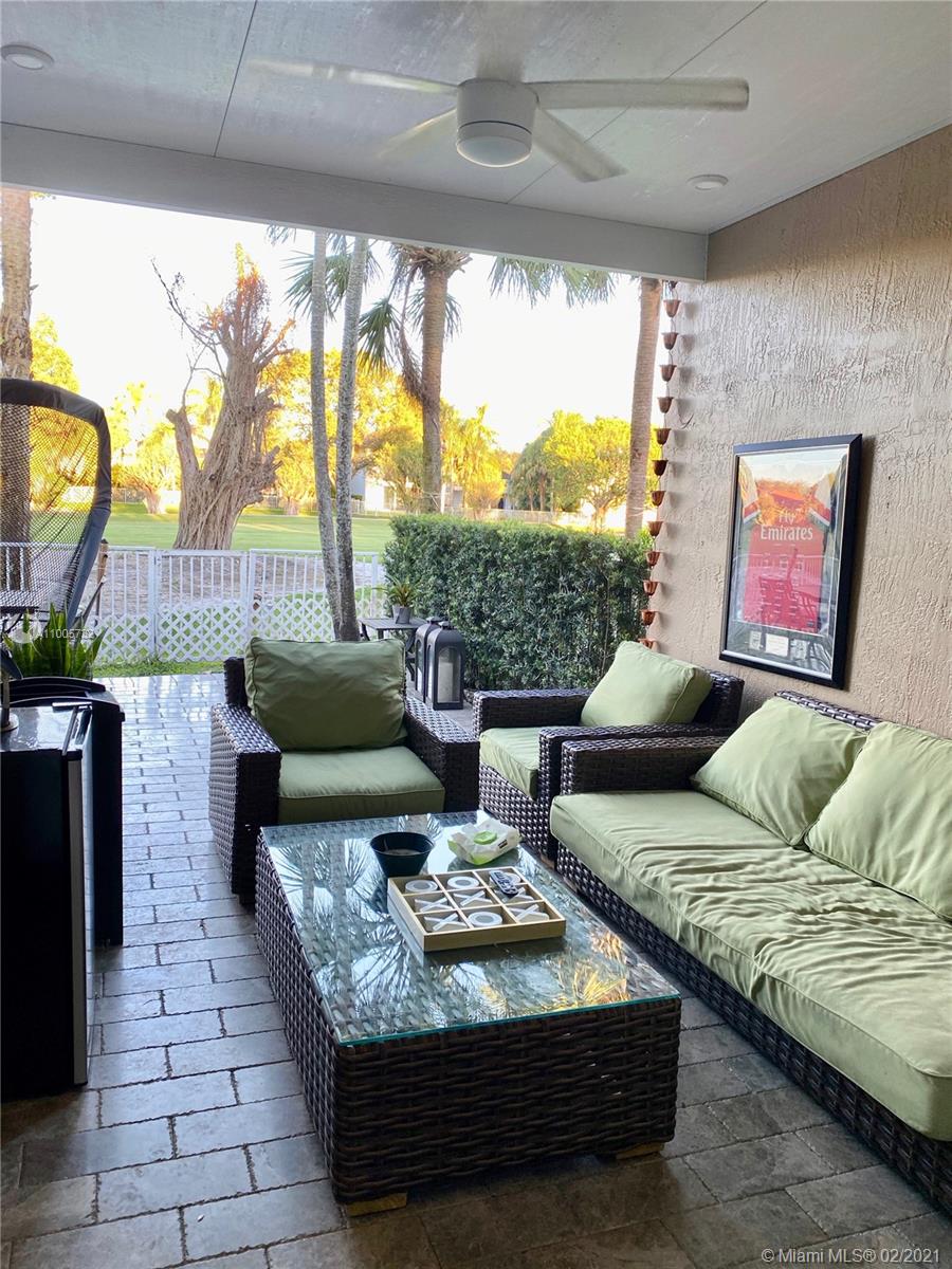 Beautiful 3BD/2.5BA townhouse with one car garage on the golf course. Kitchen renovated with stainless steel appliances, wood cabinets with extra storage. Smoke gray hardwood interior flooring and silver travertine patio with covered pergola and beautiful golf course view. Enjoy the community pool at a walking distance. Hurricane accordion shutters around the home, and plantation shutters inside master bedroom and kitchen. HOA includes AT&T cable, alarm, front gate security, lawn maintenance, and painting of the outside exterior. Centrally located close to I-75, Publix. Whole Foods, Costco and Pembroke Gardens.