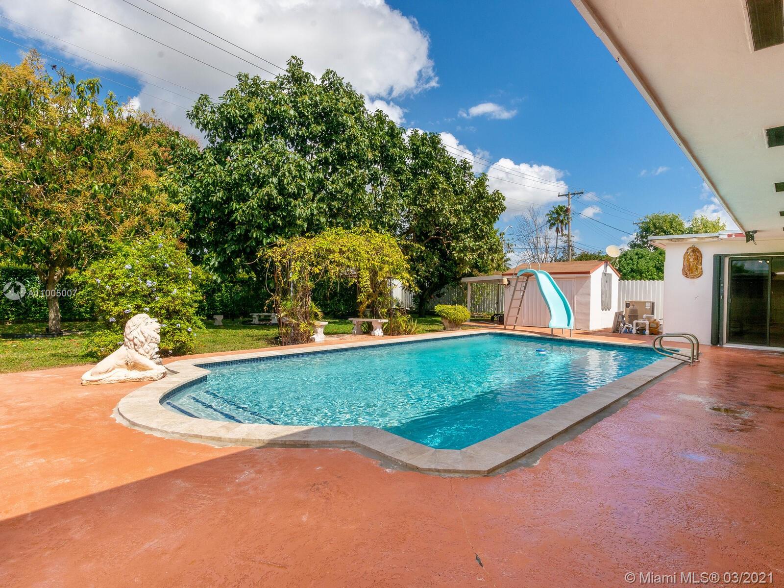 MOVE IN READY, 5/4 with an office. Great income potential in the heart of Hialeah. 2 Master Bedrooms. Newly remodeled pool with a slide. Pool bathroom. Accordion shutters throughout this home. Oasis backyard with beautiful and mature avocado and mango trees. Move into this quiet neighborhood with good schools and a backyard your family will love. Covered patio for family gatherings. Covered carport for your toys behind secure gates. Permanent Generac generator so you don't have to worry about power during/after hurricanes. Close to schools, church, shopping and major highways. This home will not last. Come see it today! Selling "AS-IS"