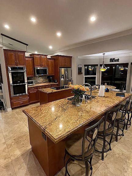 Beautiful home in sought after Brookside neighborhood of Coral Springs. This lovely 4 bedroom 2 bath split floor plan model with a pool and hot tub on waterfront lot. Home has had a new Hurricane IMPACT Double PANE INSULATED VINYL FRAME PGT Windows and doors. Hurricane impact insulated garage door 2017. All openings covered. New roof in 2013, 2013 All new 24''x 24'' porcelain marble set floors throughout living area and Bedrooms with large board laminate wood and has been meticulously well kept. Kitchen with soft close cabinets doors and drawers with one piece granite slab breakfast bar 9 feet long. Electrolux / kitchen aid appliances. New (4) zone AC system, including Garage. Pool is heated by heat pump and has pool slide.