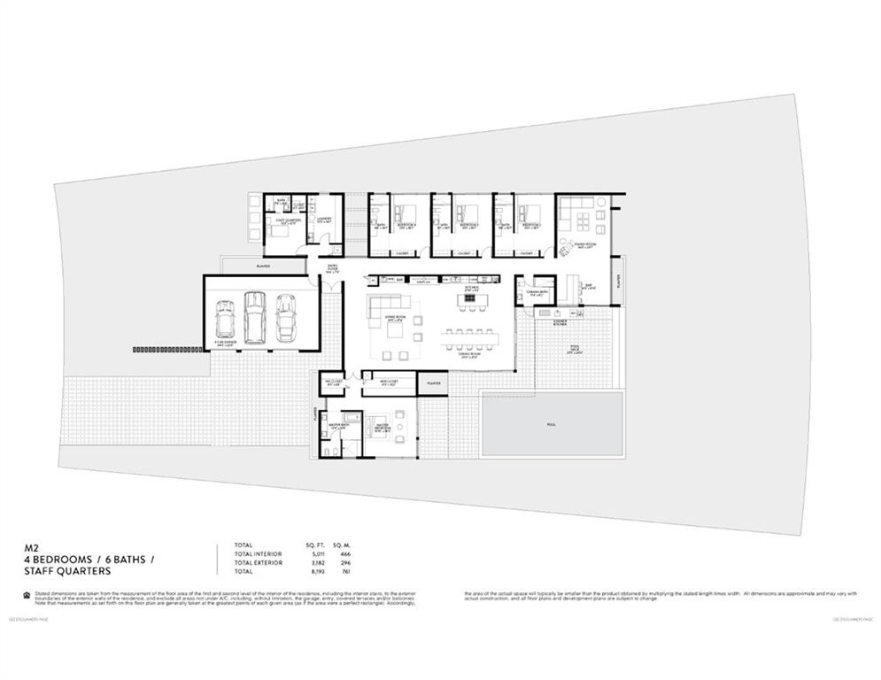 The M2 model crafted by architect Roney Mateu offers a single story split floor plan with 4 Bedrooms, 6 full Baths & Staff Quarters. Total of 5,011sf living area under AC. Soaring 19’ ceilings encased w/ glass windows showcase your formal living room, kitchen & dining room w/ natural light while overlooking your pool/patio. Chef-inspired kitchen comes equipped w/ Sub-Zero & Wolf appliances (gas cooktop) Italian cabinetry and quartz countertops. The Master Suite overlooks the pool w/ floor to ceiling glass windows. A Family Room perfect for entertaining w/ a built in bar and glass windows overlooking the pool/patio finishes the rear of the home. 3 car garage. A+ schools. Minutes to highway access.