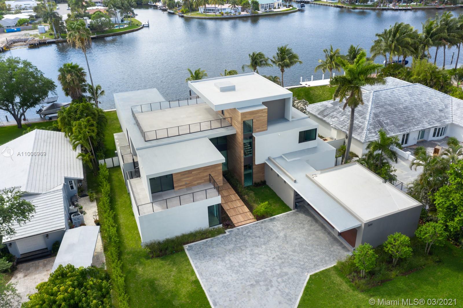 Unique, stunning, modern estate. 100 ft water frontage with panoramic views and dock. Infinity pool with attached spa. This amazing waterfront residence built in the established Coral Ridge neighborhood at 1529 Middle River Drive, Fort Lauderdale, Florida. The new home, designed in a contemporary style architecture, will be a 3-story structure with 7,700 square feet of living space that will include six bedrooms with a detached, 3-car garage, swimming pool, rooftop terrace and elevator. CONSTRUCTION JUST FINISH!!