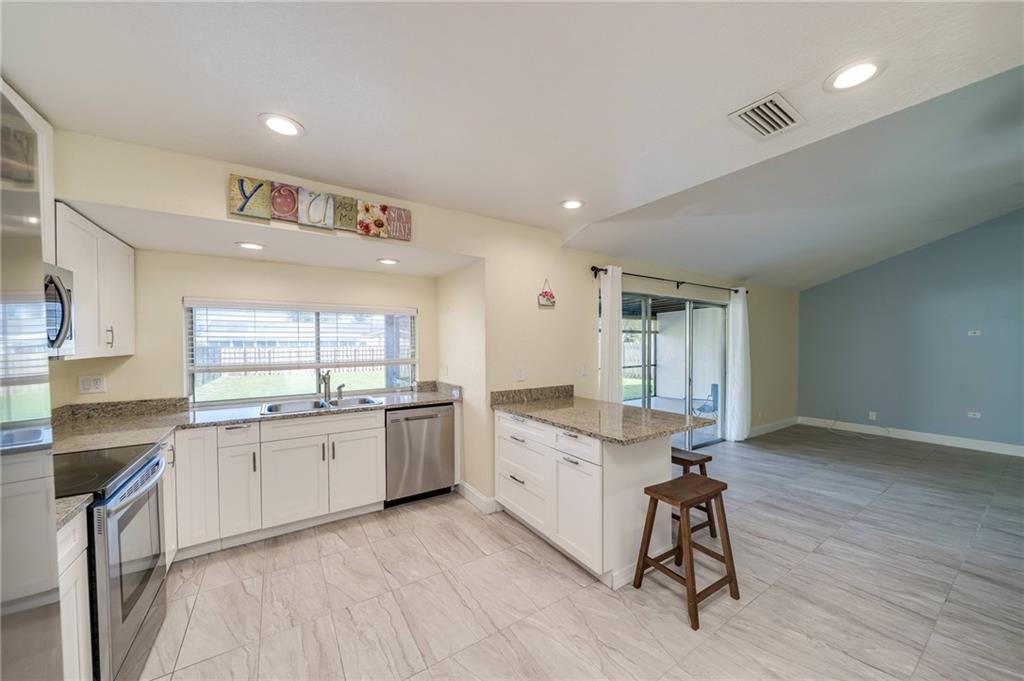 WELCOME HOME!! A TRUE 4/2 on an EXTREMELY OVERSIZED lot. Completely remodeled in 2016-17 and READY for a new owner. Park your RV or Boat, NO HOA! Room for a pool, tennis or bocce court or ALL three!!!! HUGE roofed patio area and FULLY fenced yard for to resume family gatherings with the kids and fur babies. Tile and Laminate throughout, Vaulted ceilings and lots of natural light in the main living area give this home GREAT open and airy feels. White & Granite kitchen with breakfast counter, family room, dining area and formal living room. High hat lighting, Roof (2016), GE Electrical panel & Hurricane shutters for a reasonable Insurance premium. Purchase as a primary residence or an investment and rent it for about $2500+/mo. No restrictions!