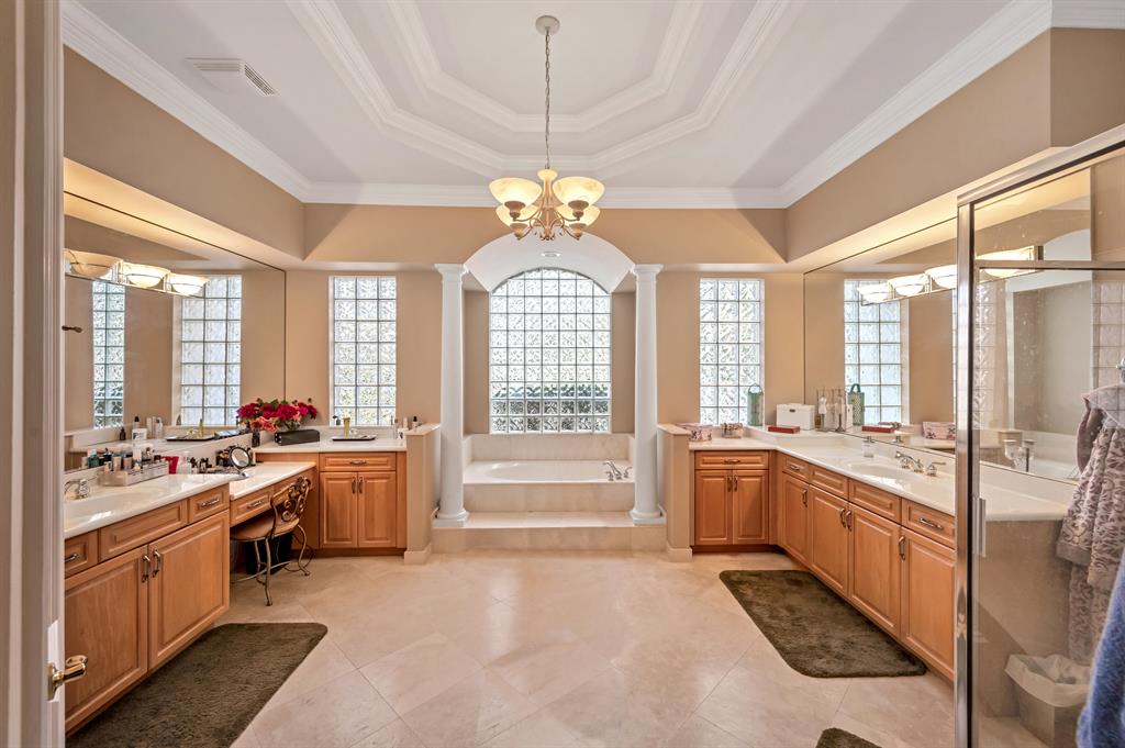 THIS RENOIR MODEL IS SITUATED ON A BEAUTIFULLY LANDSCAPED 1/3 ACRE CUL-DE-SAC LOT. JUST A FEW OF THE MANY EXQUISITE DETAILS OF THIS HOME INCLUDE: 24''X24'' SATURNIA ''GRADE A'' MARBLE LAID ON THE DIAGONAL & KNOCKDOWN WALLS THROUGHOUT LIVING AREAS. AN OVERSIZED LAUNDRY ROOM; LARGE KITCHEN WITH 2 PANTRIES, WOOD CABINETS, GRANITE COUNTERTOPS, UPGRADED APPLIANCES WITH DOUBLE SELF CLEANING WALL OVENS, OVERSIZED ISLAND AND SEPARATE EATING CAFE. HUGE FAMILY ROOM WITH 20 FT CEILINGS & SURROUND SOUND WIRING. 1ST FLOOR PRIMARY SUITE WITH DOUBLE STEP COFFERED CEILING, HIS & HER WALK-IN CLOSETS, SITTING ROOM THAT IS 12X10 USED AS OFFICE. MASTER BATH HAS 18''X18 SATURNIA ''GRADE A'' MARBLE LAID DIAGONALLY WITH SHOWER WALLS MARBLED TO CEILING, MAPLE CABINETS,